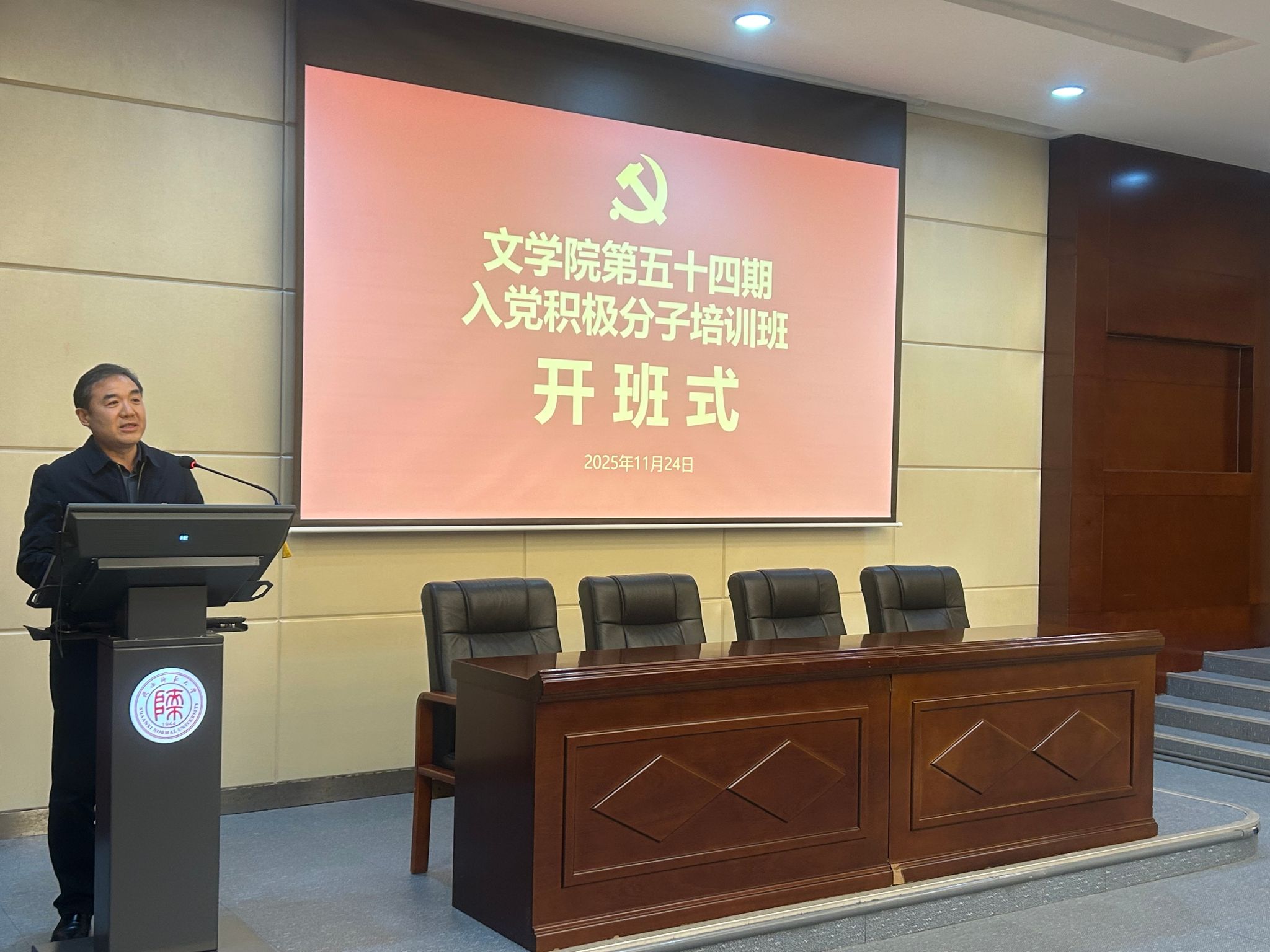 11月24日,开班式在文汇楼A段111报告厅举行。公司党委书记闫文杰,党委副书记、纪委书记刘笑出席开班式。闫文杰向参训学员表达祝贺,希望同学们认识此次集中培训的重要性,认真掌握党的基本知识,明确党员应具备的条件,进一步端正入党动机;遵守培训班管理规定,以高度的政治责任感、昂扬向上的精神风貌和求真务实的精神状态投入到培训中,在真学真懂真信上下功夫争取早日入党。2025级学科语文专业硕士研究生税碧端作为参训学员代表发言,她表示将以此次参训为契机,进一步坚定理想信念,练就过硬本领,投身实践锻炼。