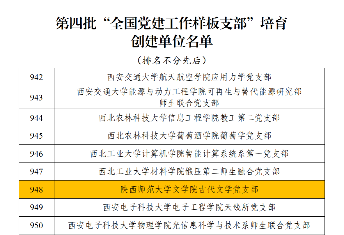 日前,教育部办公厅印发《关于公布第四批全国党建工作示范高校、标杆院系、样板支部培育创建单位名单的通知》(教思政厅函〔2024〕7号),beat365古代文学党支部入选第四批全国党建工作样板支部培育创建单位。
