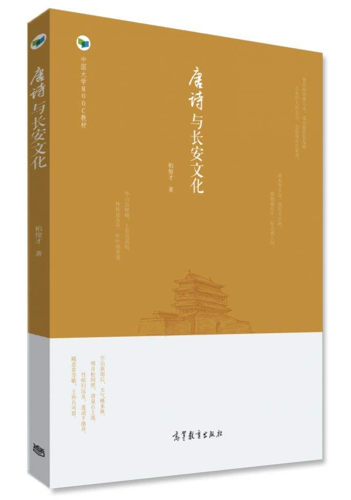 本书是同名慕课的配套教材。唐诗是中国古代诗歌的巅峰,也是中华民族最为灿烂的文化瑰宝。据统计,《全唐诗》、《全唐诗补编》中“长安”一词出现过一千四百余次,如果再加上“帝城”、“帝京”、“帝乡”“帝王州”、“皇都”、“九城”、“凤城”“上国”、“上京”、“京华”、“咸阳”、“咸京”、“秦京”等代称,以及长安城内道观、寺庙、风景名胜等,诗歌数量会更巨大。这门课程由这些有关唐代长安诗歌解读入手,分为爱情文化、政治文化、佛教文化、道教文化、科举文化、女性文化、酒文化、民俗文化、风景名胜、西域文化十个专题,让人们领略唐代长安文化辉煌灿烂的艺术魅力,增进文化自信,增强民族自豪感。该课程2018年5月起在中国大学MOOC网、智慧树等平台运行,同时该课程获批beat365官方网站“课程思政”示范课建设项目(2019年)、beat365官方网站校级一流本科课程建设项目(2020年)、陕西省精品在线开放课程(2019年)。