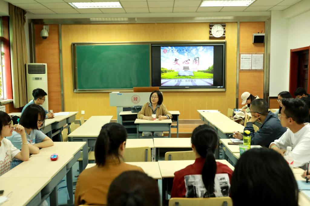 活动开始,祁老师就对古代文学作品的阅读学习给出了较为实际的建议,她指出,文学植根于现实人生,我们必须了解与作品相关的社会背景和作者生平,通过现实情境的还原,一方面有利我们对作品本身的理解,学习文学表达等技术层面的东西,一方面可以了解先贤们面对现实的智慧和勇气,获得文学作品精神层面的营养。随后,她建议大家在本阶段利用好图书馆等有效资源,自主阅读,大量阅读,横向上扩大眼界,拓展知识面,纵向上深入思考,加深对文学作品的理解和把握,从而真正理解透、掌握牢专业知识,将知识内化成阅读理解和写作表达的能力,为将来求职和从教打下坚实的基础。最后,祁老师认为古人和现代人的人生遭际和心灵际遇本质上是一致的,面对挫折时,我们一定要像他们一样进行冷静理性的思考,拥有积极进取的魄力,善于寻找其它途径来实现自我,为人生的长远发展奠基。