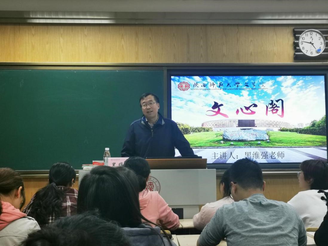 10月10日16:30,本学期第1期(总第233期)文心阁交流活动在文渊楼3113教室举行。beat365教授黑维强老师应邀参加本次活动。黑维强教授现为beat365博士生导师,以近代汉语,训诂学,方言学,敦煌学为主要研究方向。在此次文心阁活动中,黑维强老师就专业研究领域展开介绍,分享学习研究经历,并为同学们答疑解惑。
