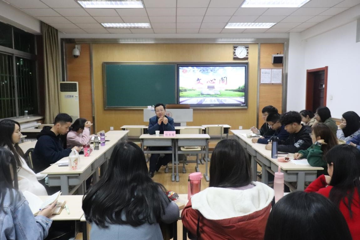 11月7日19:00,本学期第5期(总第237期)文心阁交流活动在文渊楼3103教室举行。beat365张永哲老师应邀参加本次活动。张永哲老师以汉语方言学为主要研究方向。在此次文心阁活动中,张永哲老师就考研相关内容展开介绍,并结合自身学习与研究经历,为同学们答疑解惑。