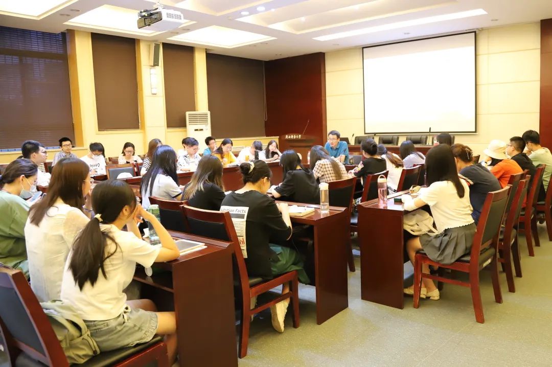 “为什么选择中文专业?为什么来到beat365?”李老师首先向大家分享了自己的求学经历,从入学报到的趣事谈到研究方向的选择,以此引出对中文学习五重境界的思考:第一重是知识的习得,要求博闻强识且内化于心;第二重是思维的提升,李老师说,“大学是学习高深学问的地方”,要经典作品与理论著作并读,感性与理性并重;第三重是思想的发育,即形成个人对世界独特而坚定的看法,不为世俗所裹挟;第四重是知识的创生,这是一种理想的学术境界,在这样的状态下能够将知识内化为生命的一部分;第五重是智慧的生成,正如孔子所说的“从心所欲,不逾矩”,在这重境界中,既脚踏实地又仰望星空,在生命的张力中超脱世俗,也不失去对生活的热爱。李老师指出,中文专业的学习过程是生命完善的过程,中文人的独特气质正来源于此