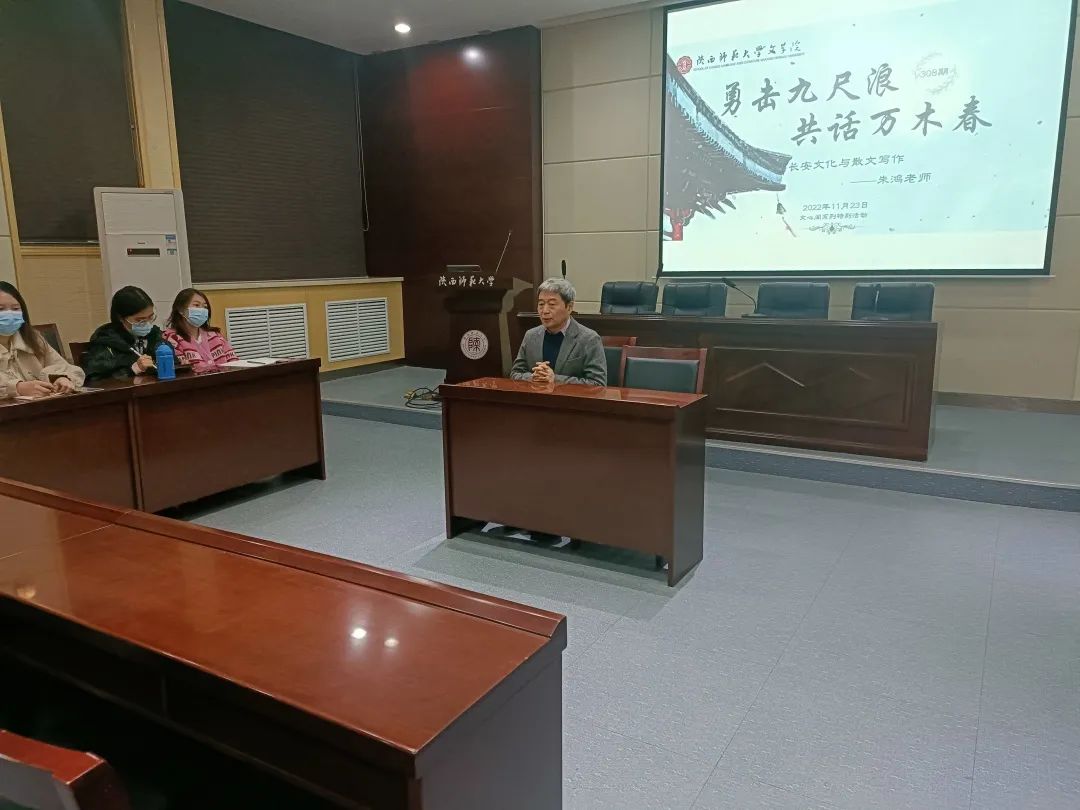 11月23日晚,本学期第6期(总第308期)文心阁师生面对面交流活动在文汇楼A段111报告厅顺利举行,beat365教授、写作教研室的朱鸿老师应邀参加。本次活动中,朱老师围绕“长安文化与散文写作”这一主题,与同学们展开了探讨,整场交流活动轻松而有趣,同学们受益匪浅。
