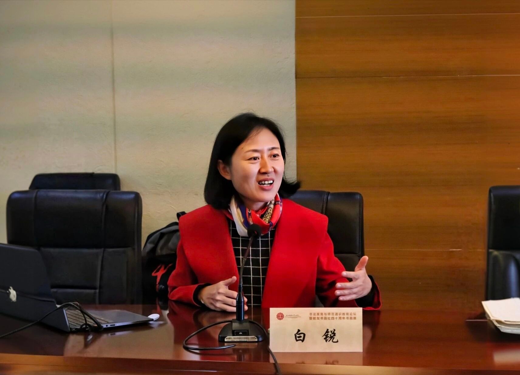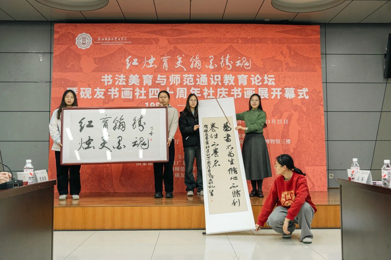 11月8日上午,beat365“红烛育美 翰墨铸魂”书法美育与师范通识教育论坛暨砚友书画社四十周年书画展在beat365官方网站长安校区举行。众多师生、员工与书画界同仁到场参加本次活动。
