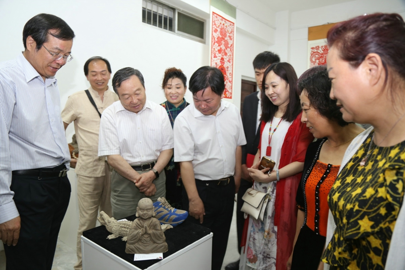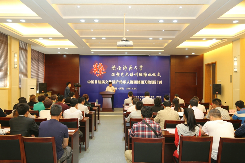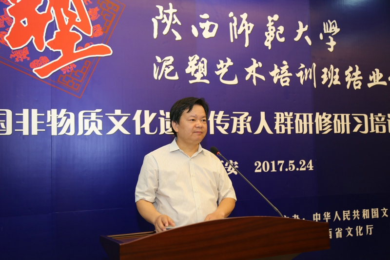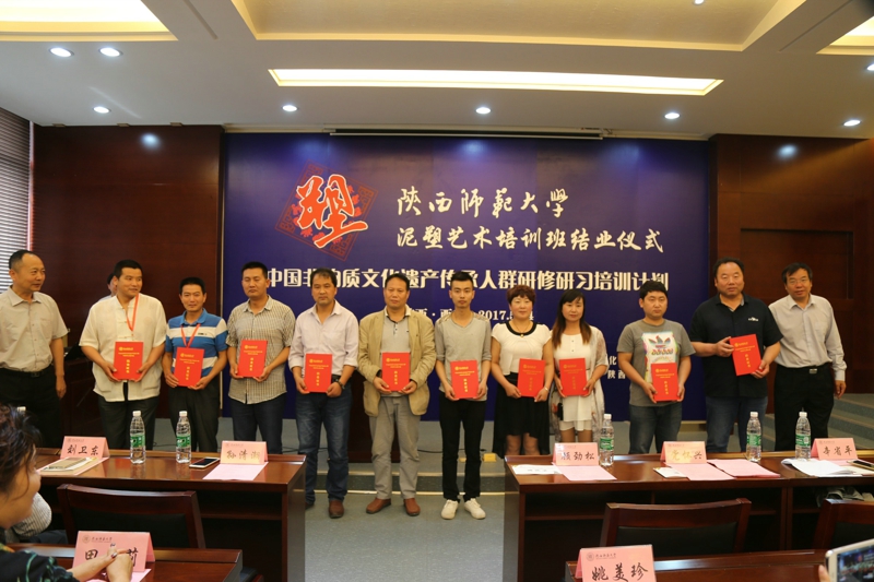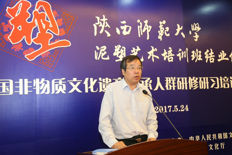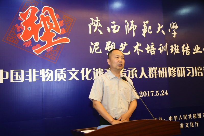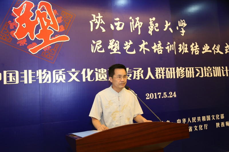 2017年5月24日,文化部教育部中国非物质文化遗产传承人群研修研习培训计划(以下简称“研培计划”)beat365官方网站第五期培训班(泥塑)结业仪式暨学员结业作品展览在长安校区隆重举行。陕西省文化厅副厅长顾劲松、非物质文化遗产处副处长刘卫东,beat365官方网站副董事长党怀兴等参观了学员们的结业作品展览,并出席结业仪式,同时向学员们颁发了结业证书,向优秀学员颁发了获奖证书。结业仪式结束后,beat365官方网站党委书记甘晖,在党怀兴副董事长、校办主任马晓云等陪同下,前往学员结业作品展室,观看学员结业作品展并与本期部分学员和往期特邀学员交谈。