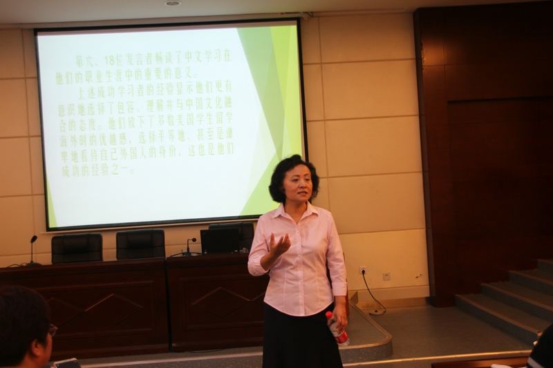 讲座开始,梁霞教授从一场在美国普林斯顿大学举办的名为How and Why Language Learning is Useful in China Careers的研讨会谈起。这是海外中文教学界一次别开生面的大会,会议的18位嘉宾均为美国学界、政界、商界等领域的成功人士,同时也曾是普林斯顿大学、普林斯顿北京班、早期明德暑期中文公司的员工。嘉宾者们从成功学习者而非教师的角度探讨了中文学习的规律与益处。梁教授总结了这些成功学习者的学习道路和个人经历,用大量生动鲜活的例子对中文教学的各个方面,包括学习的动机、教师的作用、教学法的使用、课堂的组织、教材的编写等提出了几点建议: