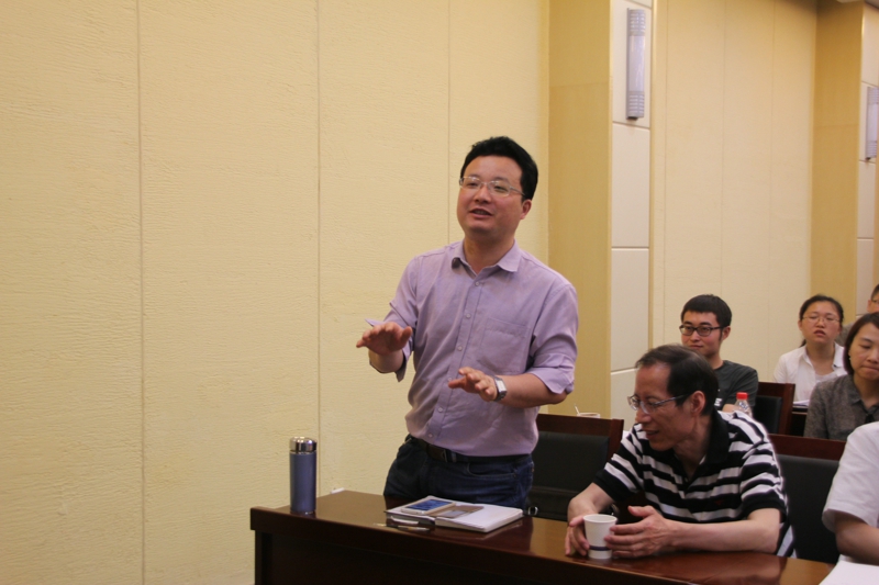 在讲到弱化音节与基本音节的关系问题时,赵教授提出一个全新的研究视角,即引入“时间格”这一概念。他认为,音节弱化后,主要会出现以下两种情况:一、弱化音节只剩下一个时间格,这个时间格可以前移到基本音节上,成为其一个音长特征,也可以由基本音节的韵基“蔓延”、“浮游”来占据。二、弱化音节与基本音节合音或使基本音节韵母发生一定变化。之后,赵日新教授还对弱化音节书写及其归宿等问题进行了讲解,认为弱化音节最终会彻底脱落,但在入声尚未消失的阶段或方言中,它也可能借入声之体得以“复活”。