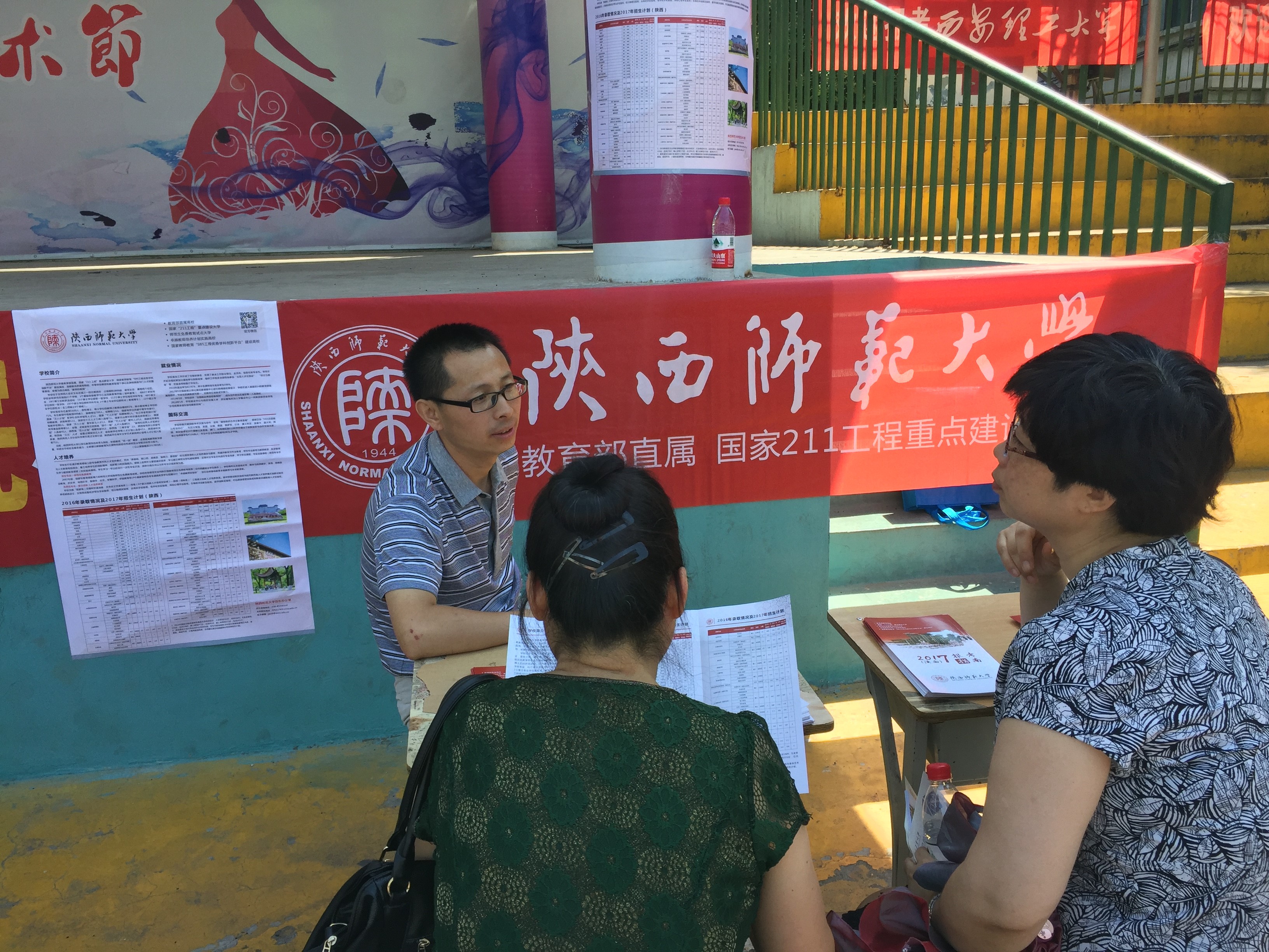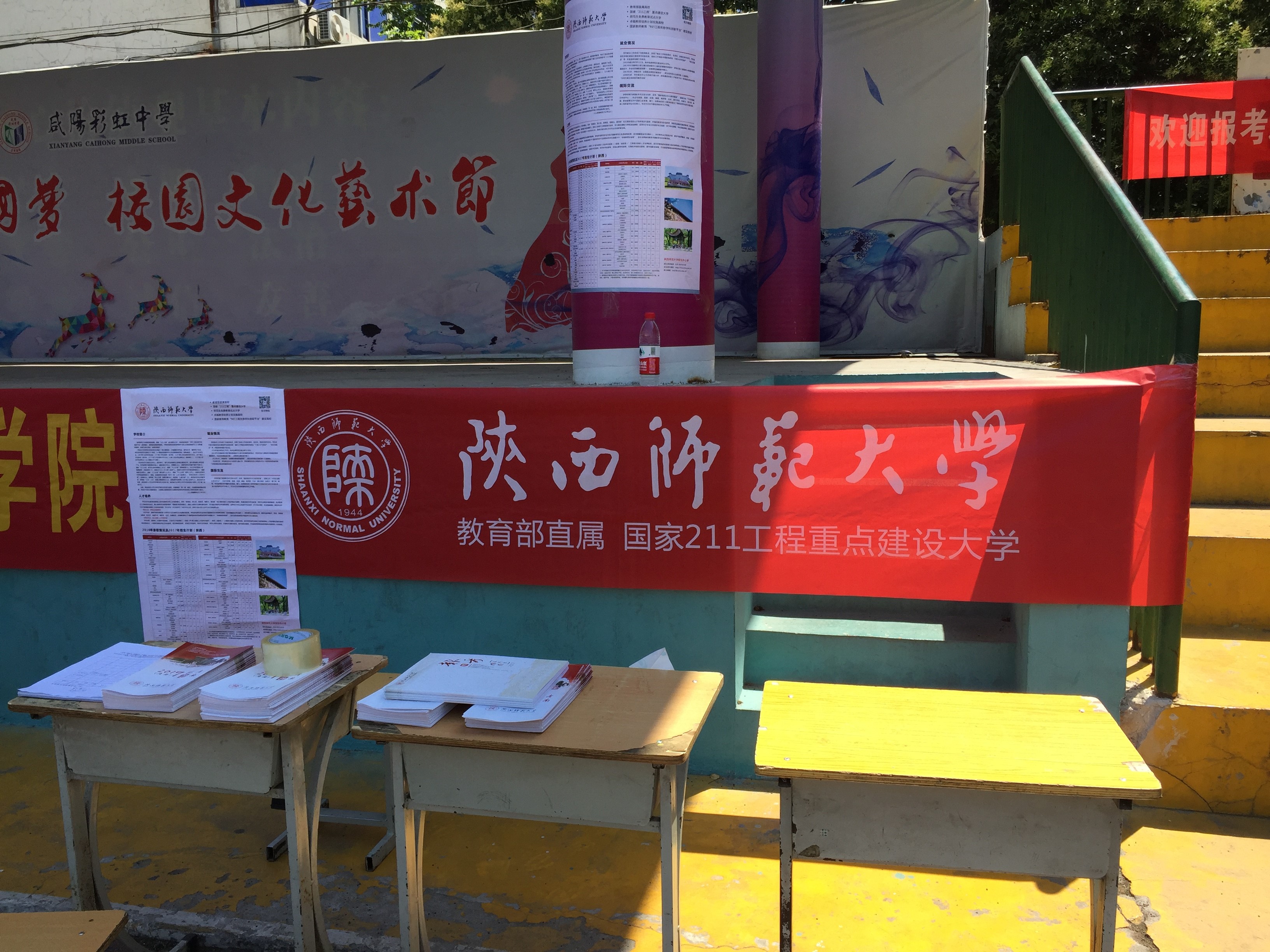 2017年6月26日beat365官方网站招生咨询会咸阳站成功举办。此次招生咨询会由beat365古代汉语教研室王伟老师负责,举办地点在咸阳市彩虹中学操场。