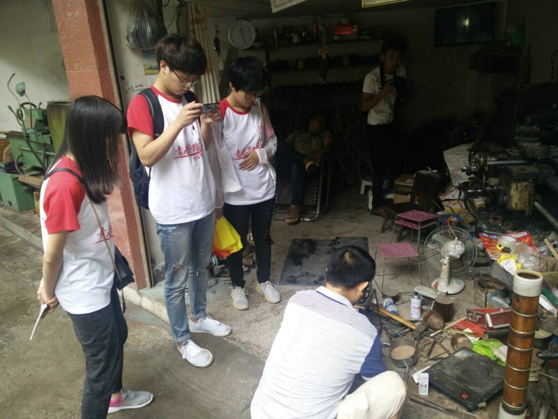 为详细了解景谷县民间传统手工艺的传承与发展,7月14日早9点,实践团成员拜访了景谷县象脚鼓手艺传承人谢红星师傅,象脚鼓是因鼓身似象脚而得名,深受傣族人民的喜爱,是其民族歌舞中不可缺少的乐器,景谷象脚鼓队曾代表云南参加中华鼓舞大赛,并荣获最高奖“山花奖”。谢师傅向成员们展示了大小材质各异的象脚鼓,并为大家献上了一小段精彩的象脚鼓舞。随后,实践团成员对谢师傅进行了深入的访谈,了解到他的经济情况、收入来源以及象脚鼓制作手艺的传承情况和市场需求。