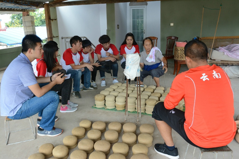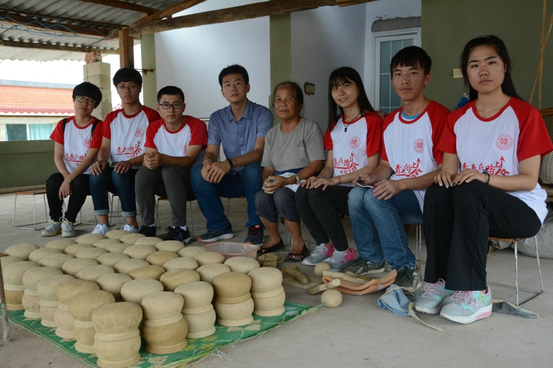 接着,实践团来到了景谷县土锅寨,拜访了威远镇70多岁的土锅手艺传承人周定仙奶奶。她向我们介绍,景谷县的傣家人在盖新房和佛事活动中常常会用到土锅。这种土锅是当地傣族自己手工捏制的,但现在人们赚钱的门路越来越多,会捏制土锅的人越来越少。周奶奶说,她很想把这门手艺传下去,但现在没人愿意来学,这门手艺面临着失传的危险。最后,她当场向大家展示了土锅的捏制过程。
