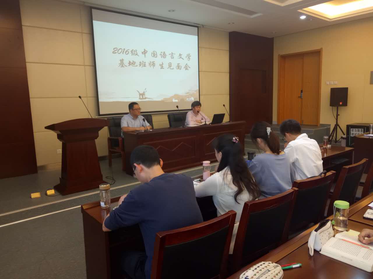 首先,beat365副经理苏仲乐老师发表了热情洋溢的讲话。他首先师代表公司对2016级基地班35位同学加入基地班这个大家庭表示热烈欢迎。接下来苏老师向各位同学们介绍了公司中国语言文学基地班的建设历程和培养目标,详细说明了公司在人才培养改革方面为基地班设置“读书会”的意义,鼓励大家要立志高远,发扬基地班的优良传统,好好利用公司为大家提供的优质资源,为基地历史再谱新篇。接下来,基地班专业负责人杨晓斌老师进行了发言。杨老师主要向各位基地新生介绍了16级基地班人才培养方案的新增的内容,并强调了基地班在人才培养方面的特色。寄语同学们多读经典,潜心学术,开阔视野,追求卓越。