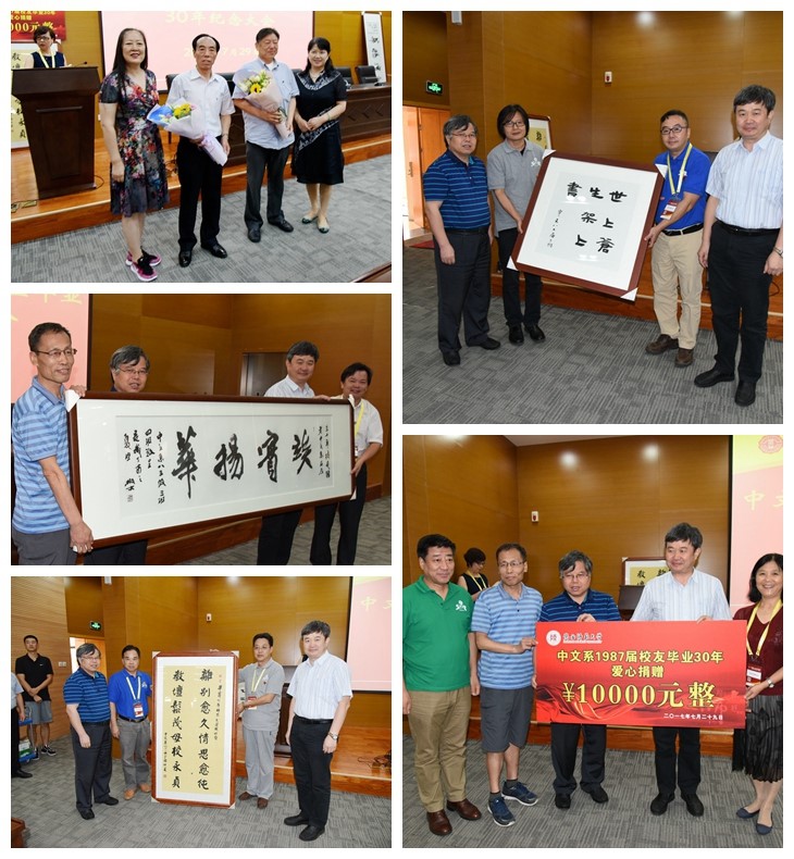 在纪念仪式上,经理张新科教授代表公司致辞,他表示,公司的发展凝聚着各位员工的心血和深情厚谊,几代教师和历届员工的共同努力,才有了今天beat365这颗参天大树,希望各位员工一如既往地关注和支持母校发展,为beat365建设成为世界一流学科凝气聚力。时任中文系领导代表傅功振老师,时任辅导员代表第五太卓老师等分别讲话,他们回忆了上世纪80年代与各位员工艰苦奋斗的历程,并表达了对员工们的美好祝愿,殷殷之情,切切之意,让众多员工感动不已。员工们还亲笔挥毫,写下了“养浩然气,读有用书”、“世上苍生架上书”等书法作品作为礼物赠送给了公司,公司也向各位员工回赠了《松林回忆录》等书籍。
