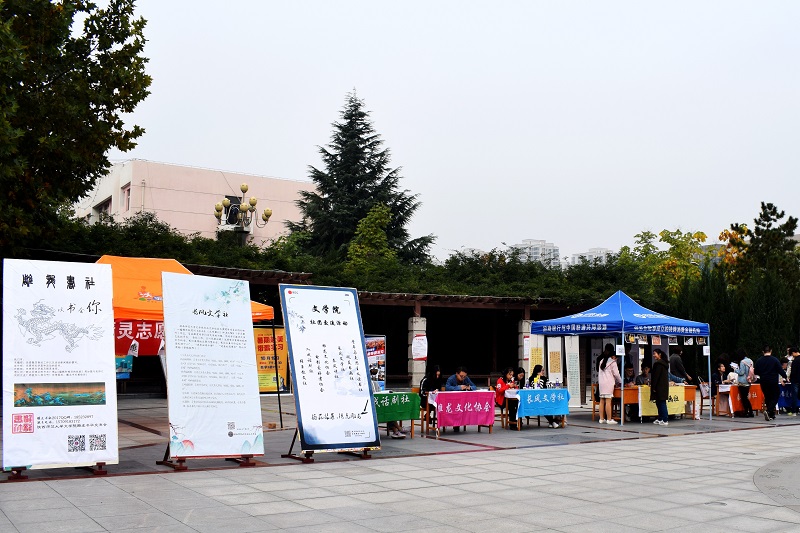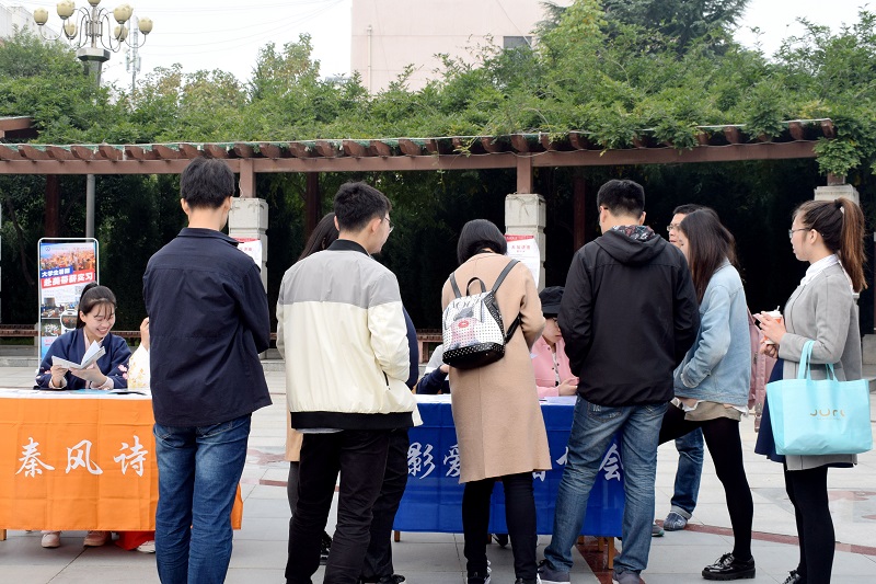 为加强校园文化建设,10月22日全天,beat365团委在长安校区阳光苑前举办员工社团宣传与交流活动。beat365秦风诗社、砚友书画社、入戏话剧社、长风文学社、雕龙文化协会、电影爱好者协会、青年马克思主义读书社、雏玉散文社等8个员工社团参与,吸引了全校师生的关注和支持。