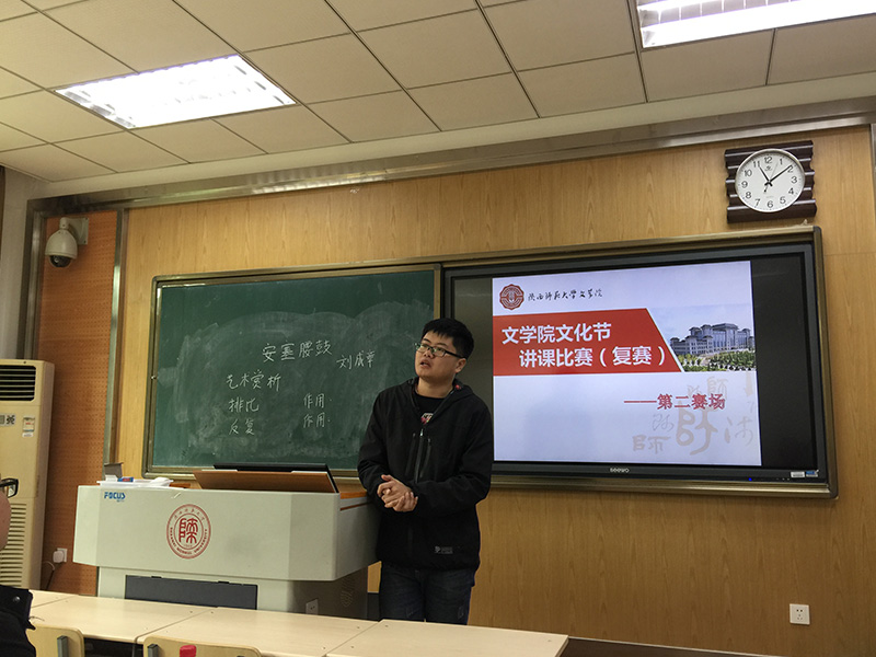 大赛分为初赛、复赛以及决赛,初赛和复赛采用传统讲课方式,在不使用课件的情况下,要求同学们以清晰流利地表达、明确漂亮的板书、大方得体的仪态进行比赛。考验选手们是否具备严谨明确的讲课思路、准确而具有感染力的肢体语言和冷静自如的心理状态。beat3652015级辅导员程海峰老师作为活动嘉宾,经验丰富的志愿者们担任评委。程老师对每一位勇于参赛的选手表示肯定,同时也对参赛选手们提出了一些建议,他指出,讲课内容要讲细讲全,注意实际操作,要具有一定逻辑性。课堂要注意与实际课堂相联系,讲究课堂提问的方法,并强调了练一手好字的重要性。