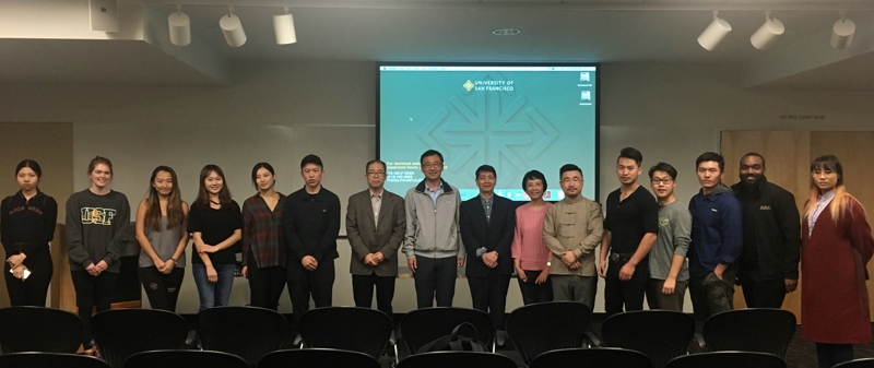 在此次论坛之前,应旧金山大学中文系邀请,胡安顺教授、惠红军教授赴该校就汉语音韵和汉语教学等问题进行了交流。胡安顺教授并应邀于10月9日为该系员工作了题为《汉字的对立关系及其价值》的专题报告,报告由系主任李志强教授主持和翻译,旧金山大学利玛窦中西文化历史研究所吴小新博士、美国国防语言公司张英宇教授和惠红军教授等也参加了报告会。报告引起了与会师生的极大兴趣,也反映了汉字在全球化背景下的重要影响。在互动环节,胡安顺教授与师生就汉字字形的对立性、作用、汉字与汉语的关系、汉字与中国文化的关系等问题进行了热烈的交流,回答了师生提出的各类问题。报告在热烈的掌声中结束。