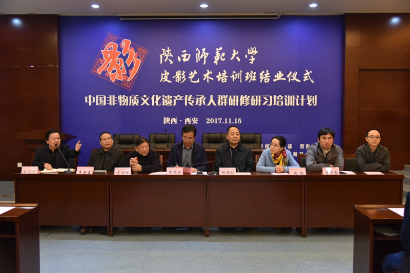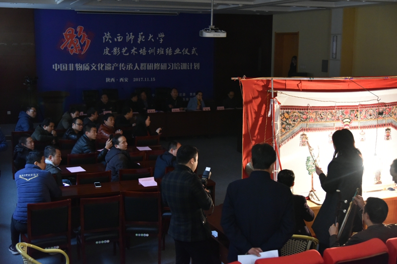 【通讯员 陈丹玉】2017年11月15日,由公司承办的文化部教育部中国非物质文化遗产传承人群研修研习培训计划(以下简称“研培计划”)beat365官方网站第七期培训班(皮影)结业仪式暨学员结业作品展览、展演在长安校区隆重举行。陕西省文化厅副厅长顾劲松、非物质文化遗产处副处长周颖,beat365官方网站副董事长党怀兴等出席结业仪式并参观、观看了学员的结业作品展览、展演,同时向学员们颁发了结业证书,向优秀学员颁发了获奖证书。