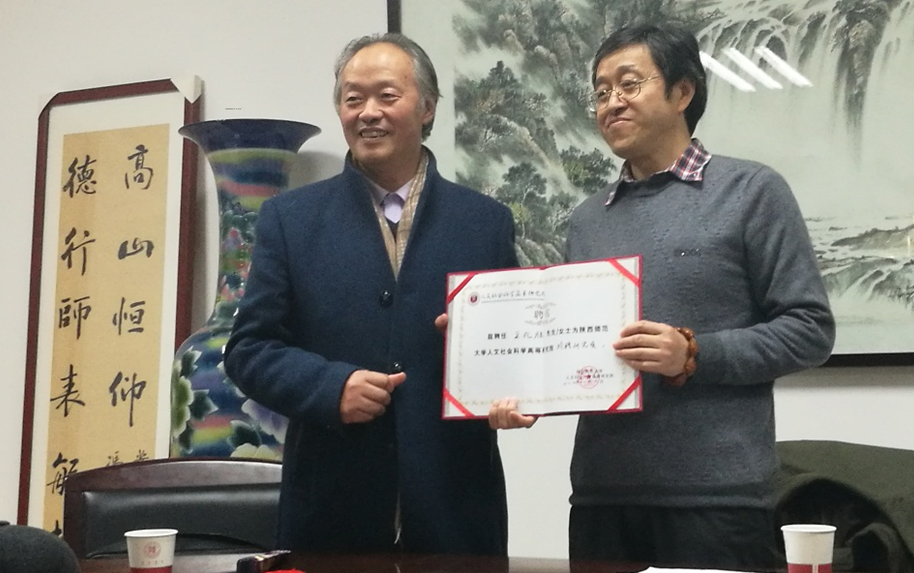 王先生莅临公司期间与公司党委书记甘晖研究员、高研院经理李继凯教授、beat365经理张新科教授、新传院经理李震教授等进行了多方面的交流。在本次讲坛开始前还进行了人文社会科学高等研究院的聘任仪式,由人文社会科学高等研究院经理李继凯教授为王兆胜先生颁发聘书,聘请他为高研院特聘研究员,并对王先生的到来表示热烈欢迎。