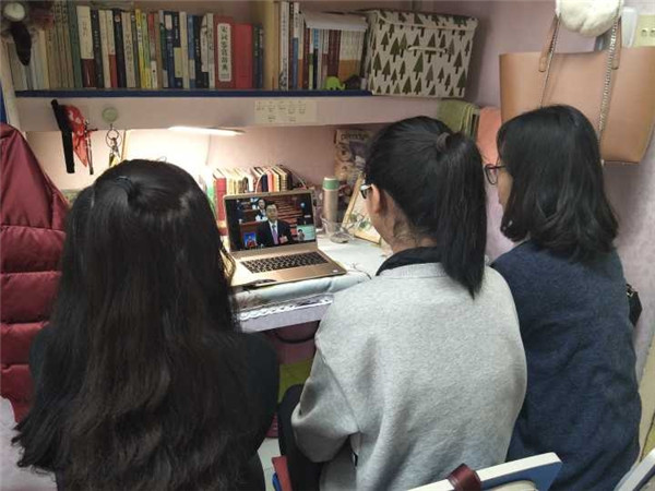 2017级汉语言文学4班邓旭同学说道 :“李总理的工作报告特别接地气,我们听得懂,记得住,期待着这些接地气的条陈落到实处,造福人民。”