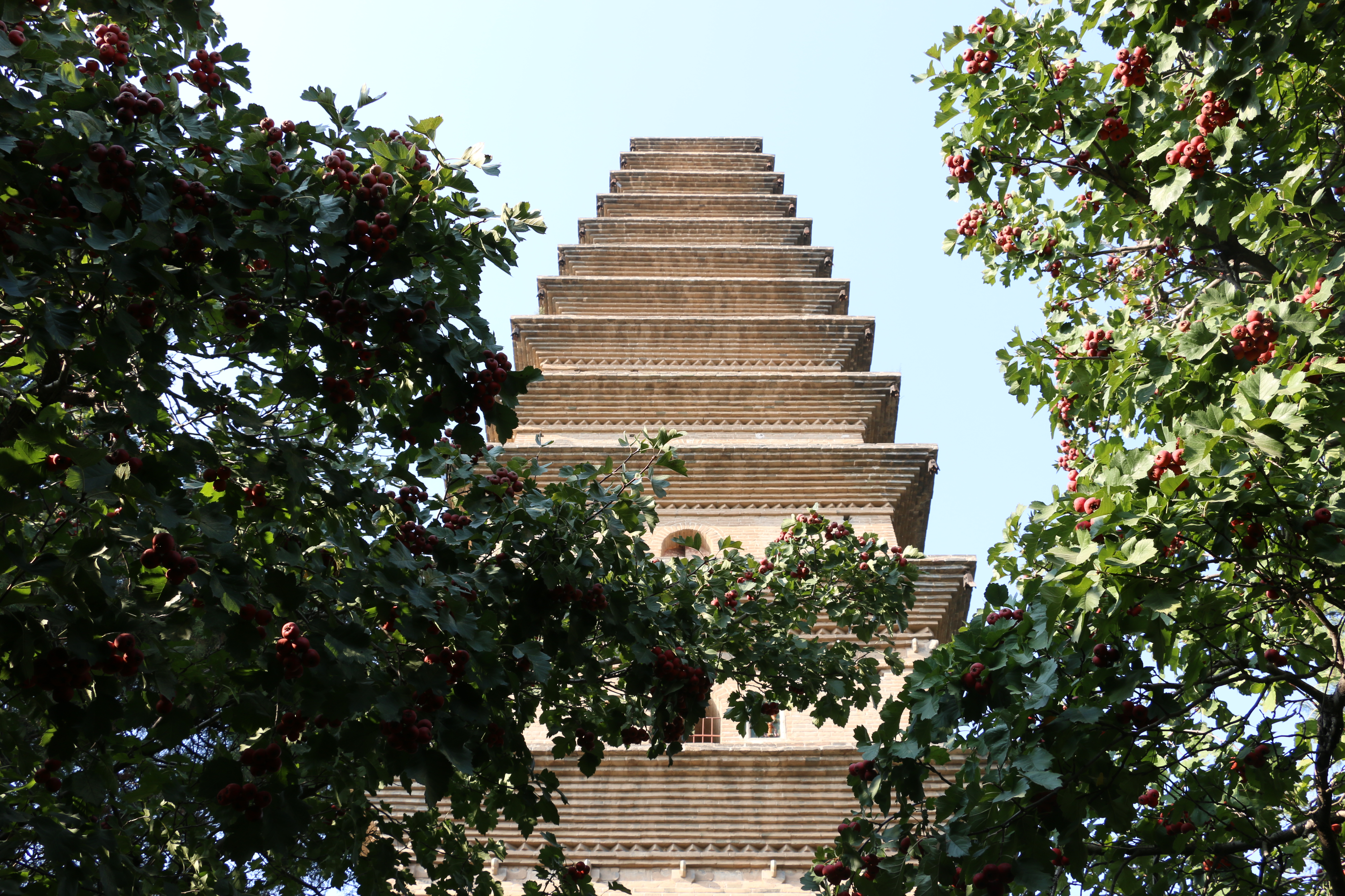 本次实践教学的最后目的地是鹳雀楼。鹳雀楼,又名鹳鹊楼,因时有鹳雀栖其上而得名,位于永济市蒲州古城西面的黄河东岸。始建于北周,由于楼体壮观,结构奇巧,加之周围风景秀丽,唐宋之际常有文人学士登楼赏景,并留下许多不朽诗篇,其中以王之涣《登鹳雀楼》最富盛名。后毁于战火。1997年12月,该楼的复建工程开始,2002年9月26日,新鹳雀楼落成。新建的鹳雀楼为仿唐形制,外为四檐三层,内分六层。