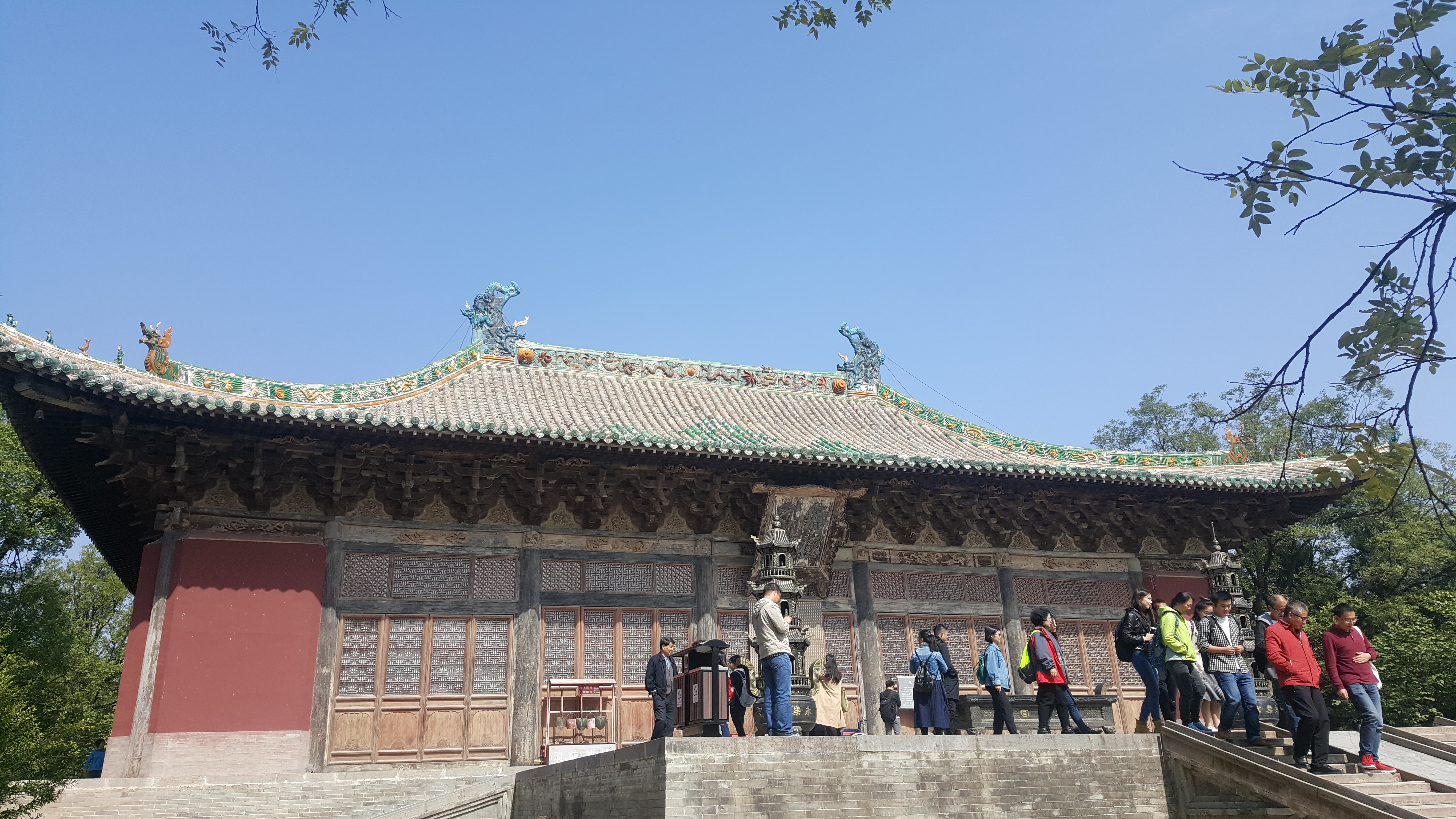 实践教学的第一站是芮城永乐宫。永乐宫属全国重点文物保护单位,因故址在永乐镇而命名,又名大纯阳万寿宫。上世纪五十年代因为三门峡水库修建的需要进行了整体搬迁,现址位于芮城县城北3公里的龙泉村东侧。永乐宫始建于元代,修建持续了110余年,以其精彩纷呈的壁画名世。永乐宫壁画是中国古代壁画的奇珍,它不仅是我国绘画史上的重要杰作,在世界绘画史上也是罕见的巨制。永乐宫壁画共计1000平方米,分布在无极殿、三清殿、纯阳殿和重阳殿里。其中三清殿是主殿,殿内壁画共计403.34平方米。画面高4.26米,全长94.68米。