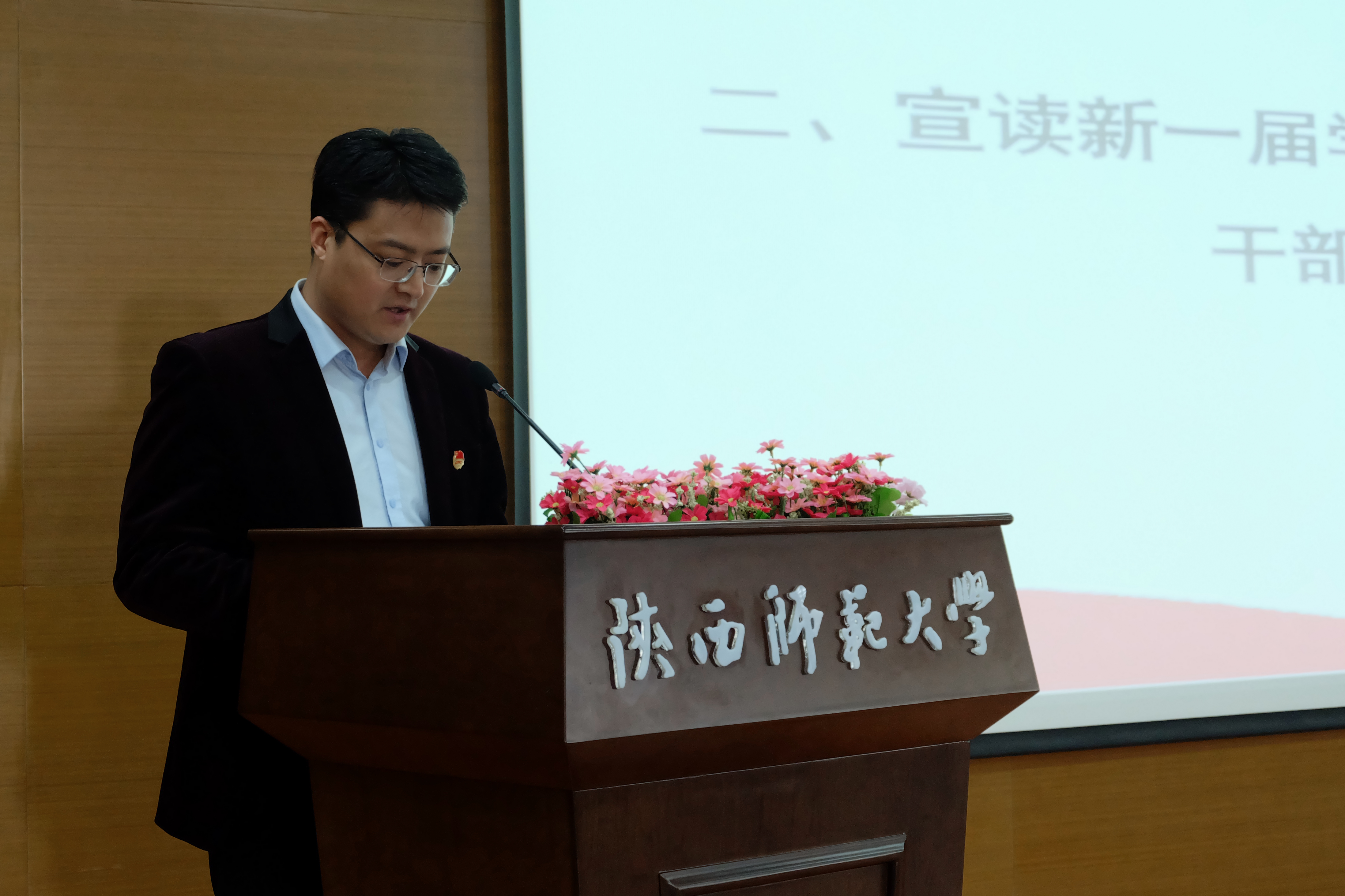 大会在激扬高亢的共青团歌中拉开帷幕。首先,王阳阳老师宣读了beat365新一届员工会、研究生会干部名单,李斐老师宣读了公司新一届昭文工作室、宿舍管理委员会、员工社团干部名单。各位老师向为公司发展做出贡献的同学表示感谢,并表达了对新任员工干部们的殷切期望。