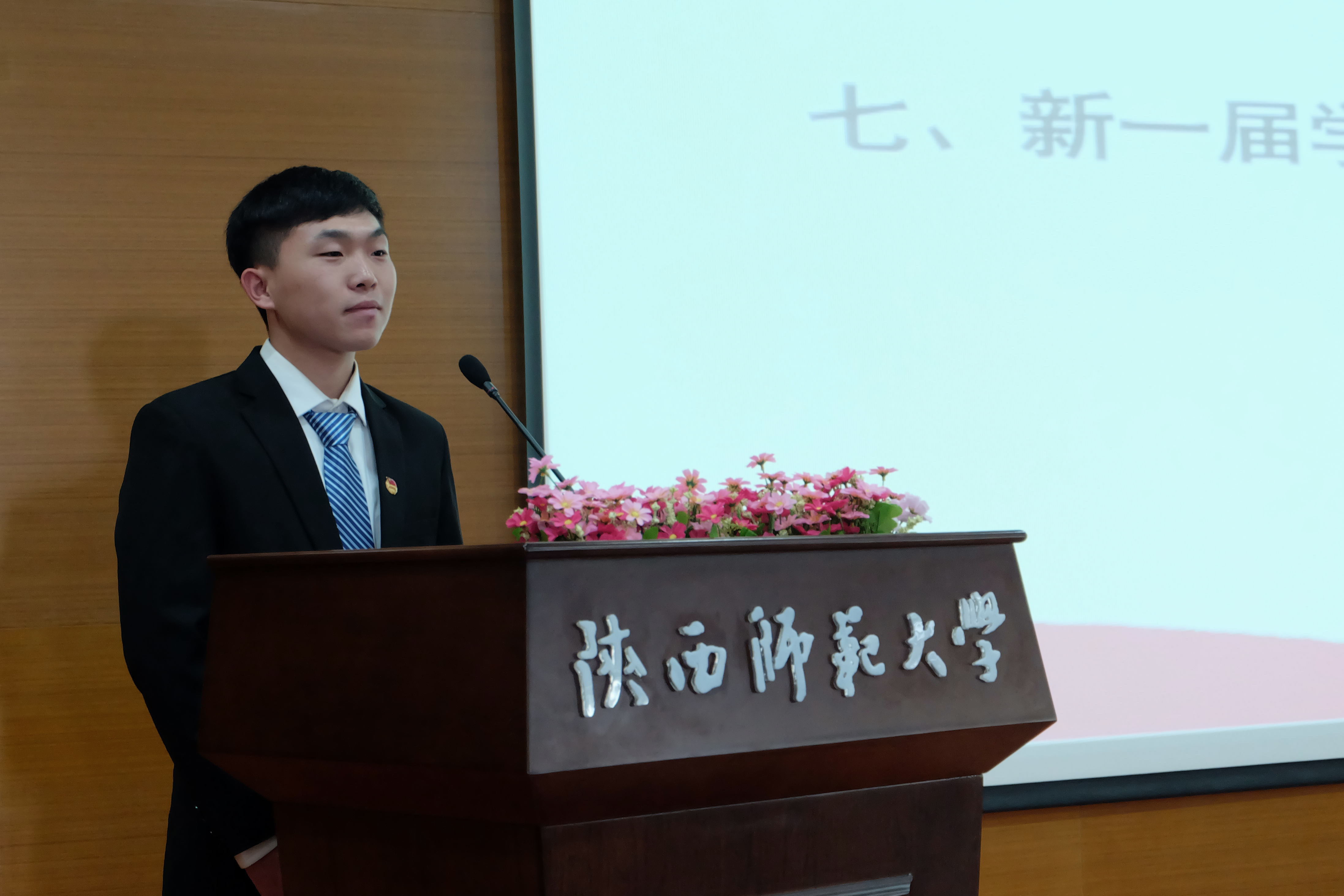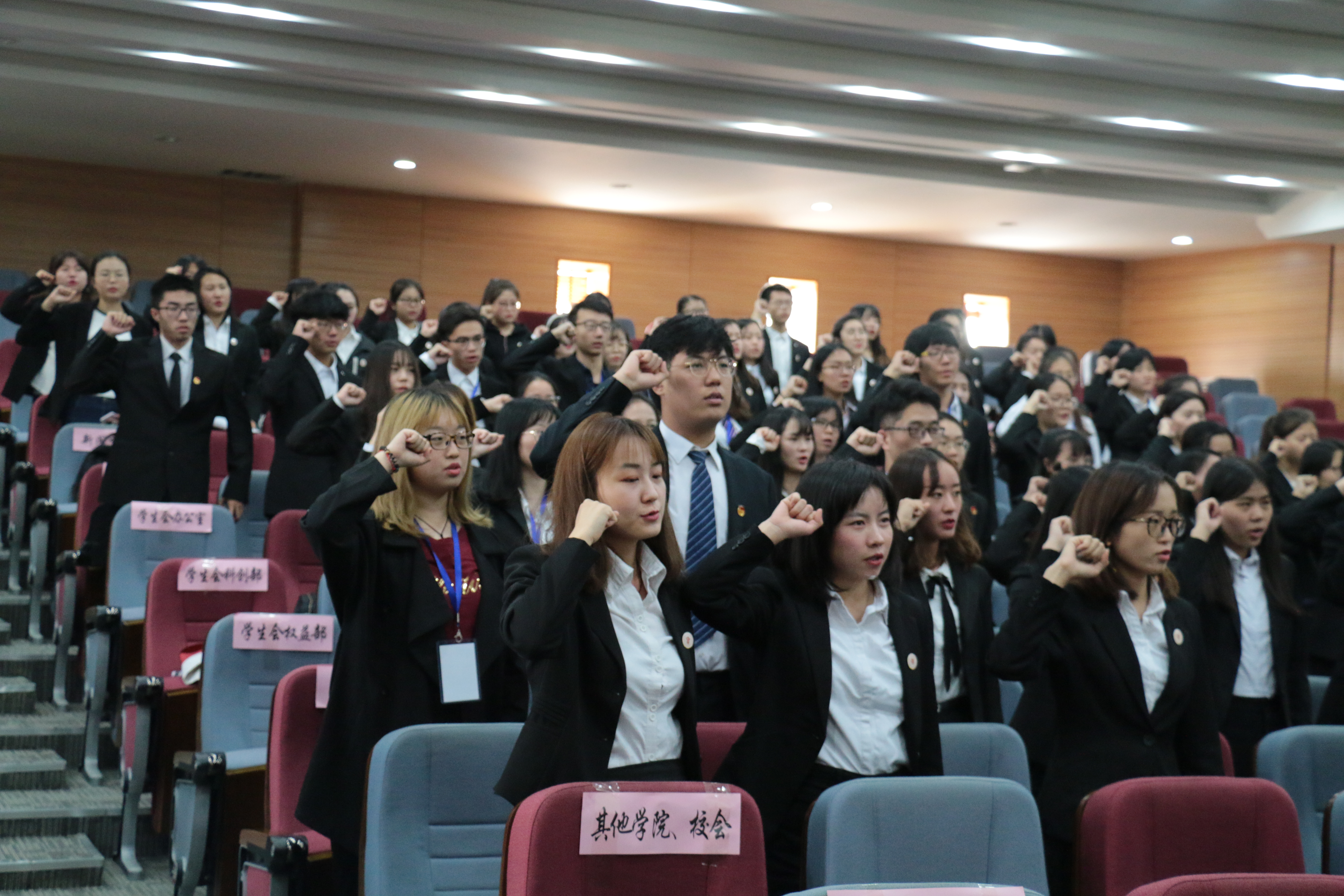 随后,新一届员工会主席王楠同学、研究生会主席尚佳丽同学、宿舍管理委员会主任陈伟豪同学、昭文工作室主任贺佳晨同学、社团干部代表王菁华同学先后发言。他们表示将在新的起点上,继承传统,团结一致,精诚合作,为同学们提供更宽广的平台,充分发挥纽带作用,不断改进、不断创新,努力为公司大家庭创造属于自己的光与热。接着,新任员工会主席王楠同学带领全体员工郑重宣誓,将继承光荣传统,保持优良作风,为推动公司各项事业发展贡献自己的青春力量。全体员工干部一定会以脚踏实地的工作作风,积极向上的工作态度,迎接中国语言文学世界一流团队建设带来的挑战。