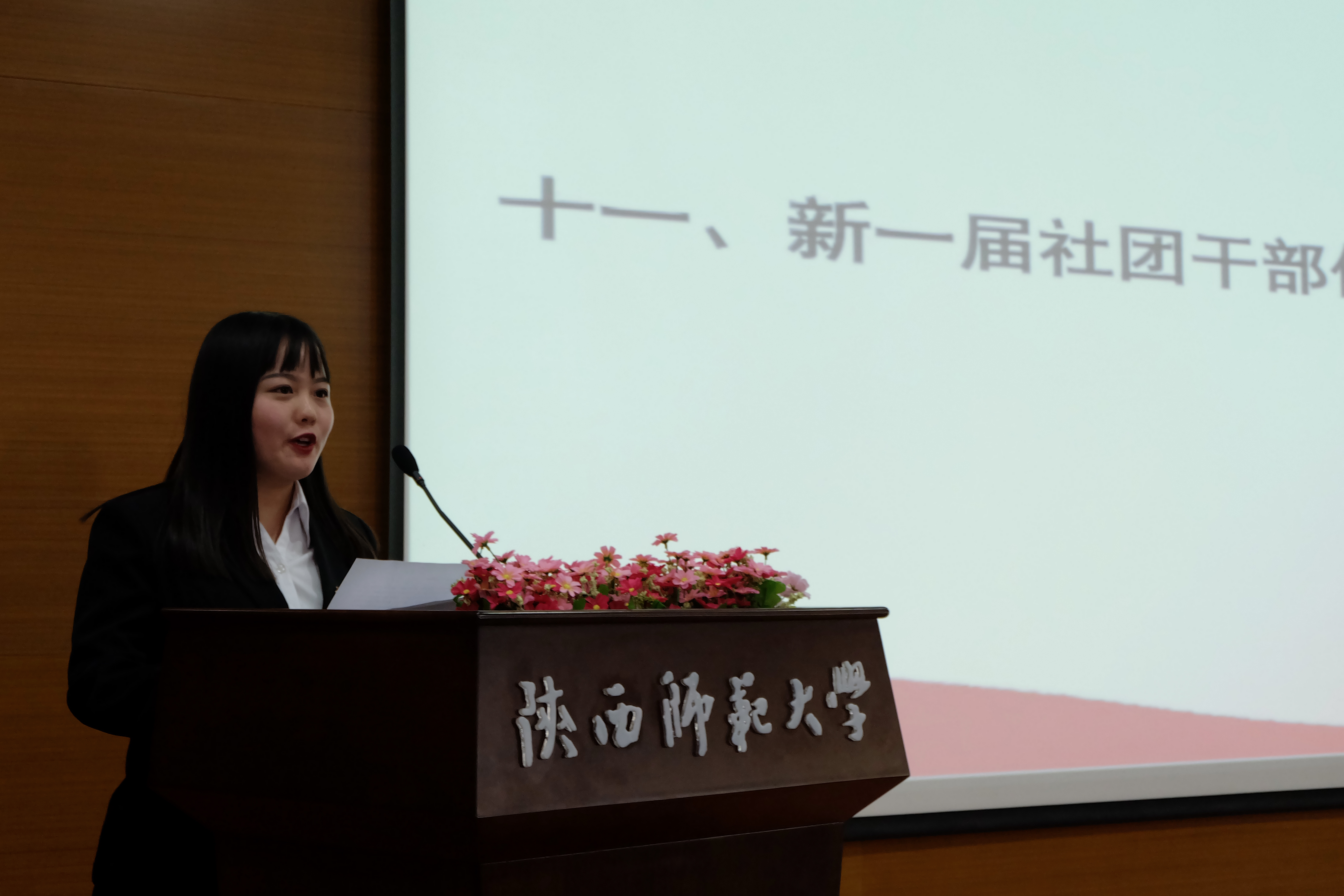 最后,公司党委副书记李斐致辞。李老师在致辞中希望新一届员工干部要秉持心中有情,胸中有爱,肩上有责,手里出活的工作态度;坚定加强学习,加强实践,提升能力,成就卓越的工作追求;践行不忘初心,牢记使命,严于律己,服务师生的工作作风。此外,李老师强调了共同助力中国语言文学世界一流团队建设的重要性,希望同学们群策群力,为公司建设添砖加瓦。李老师宣布,公司第九届“崇德明志,尚文笃学”文化节开幕。在热烈的掌声中,本次会议圆满结束。