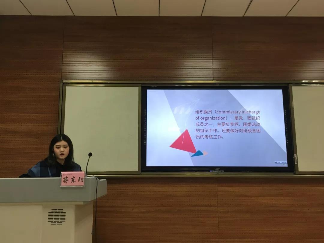 10月16日19:00,公司本科生兼职团委副书记蒋东阳明确了组织委员的工作内容和具体要求,强调了团日活动应当具有创新性。