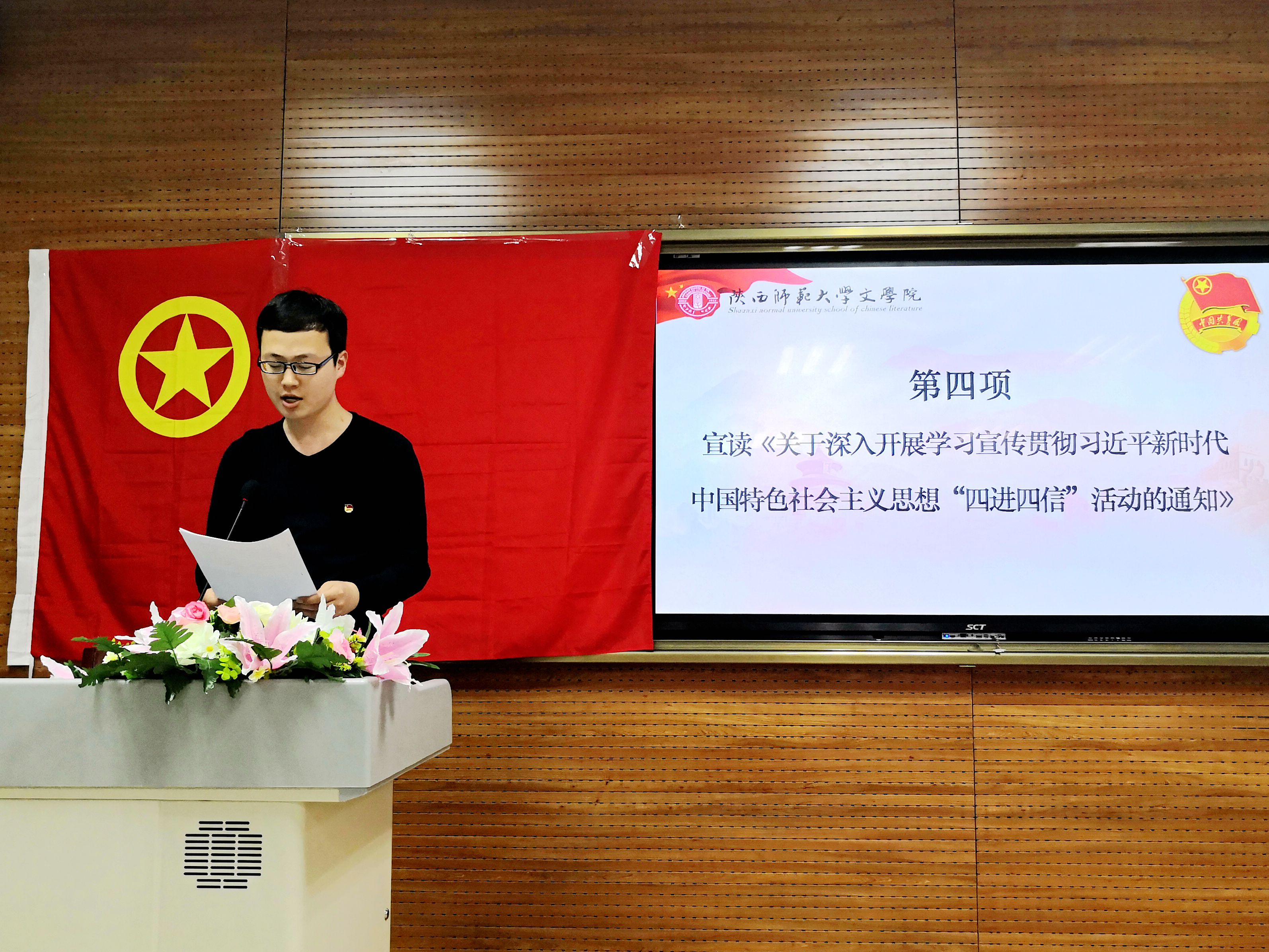 之后,beat365研究生兼职团委副书记刘浩宇宣读《关于深入开展学习宣传贯彻习近平新时代中国特色社会主义思想“四进四信”活动的通知》。院员工会组织部部长严玉代表员工会、研究生会对在全院团支部中开展“四进四信”活动作了详细安排,就各项工作任务的具体时间和形式作了要求,并给各支部配发《beat365团委深入开展学习宣传贯彻习近平新时代中国特色社会主义思想“四进四信”活动方案》。