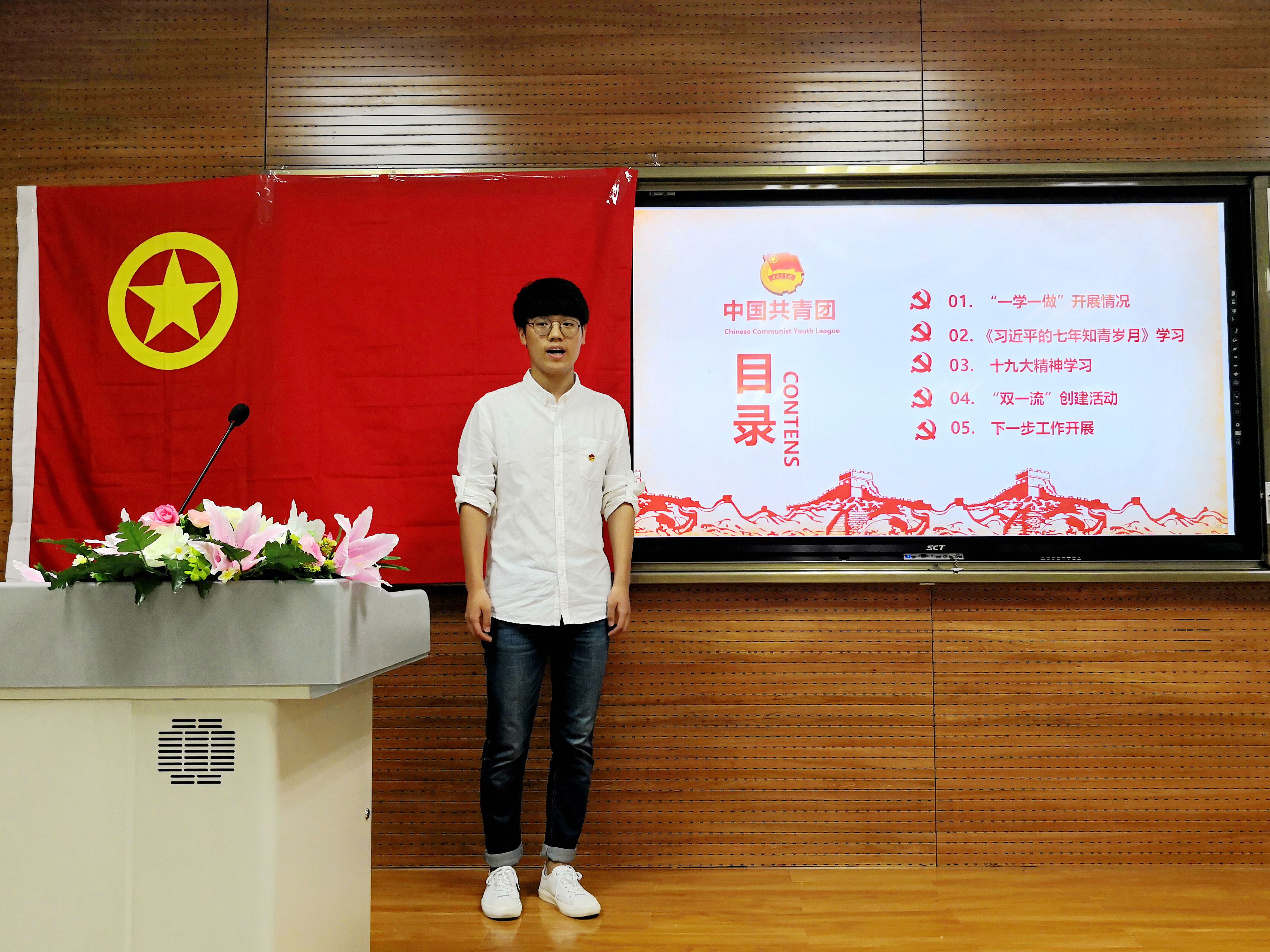 会议伊始,全体起立奏唱团歌。beat365本科生兼职团委副书记崔铁成作本学年上学期共青团工作回顾总结报告,汇报了院团委“学总书记讲话 做合格团员”教育实践开展情况、《习近平的七年知青岁月》学习分享活动、“十九大”精神学习、围绕“一流学科”建设员工组织作用发挥等四个方面的工作。接着,院团委对本学年团学工作先进个人进行了表彰,院团委书记辛田为6位表现突出的团干部颁发奖状。