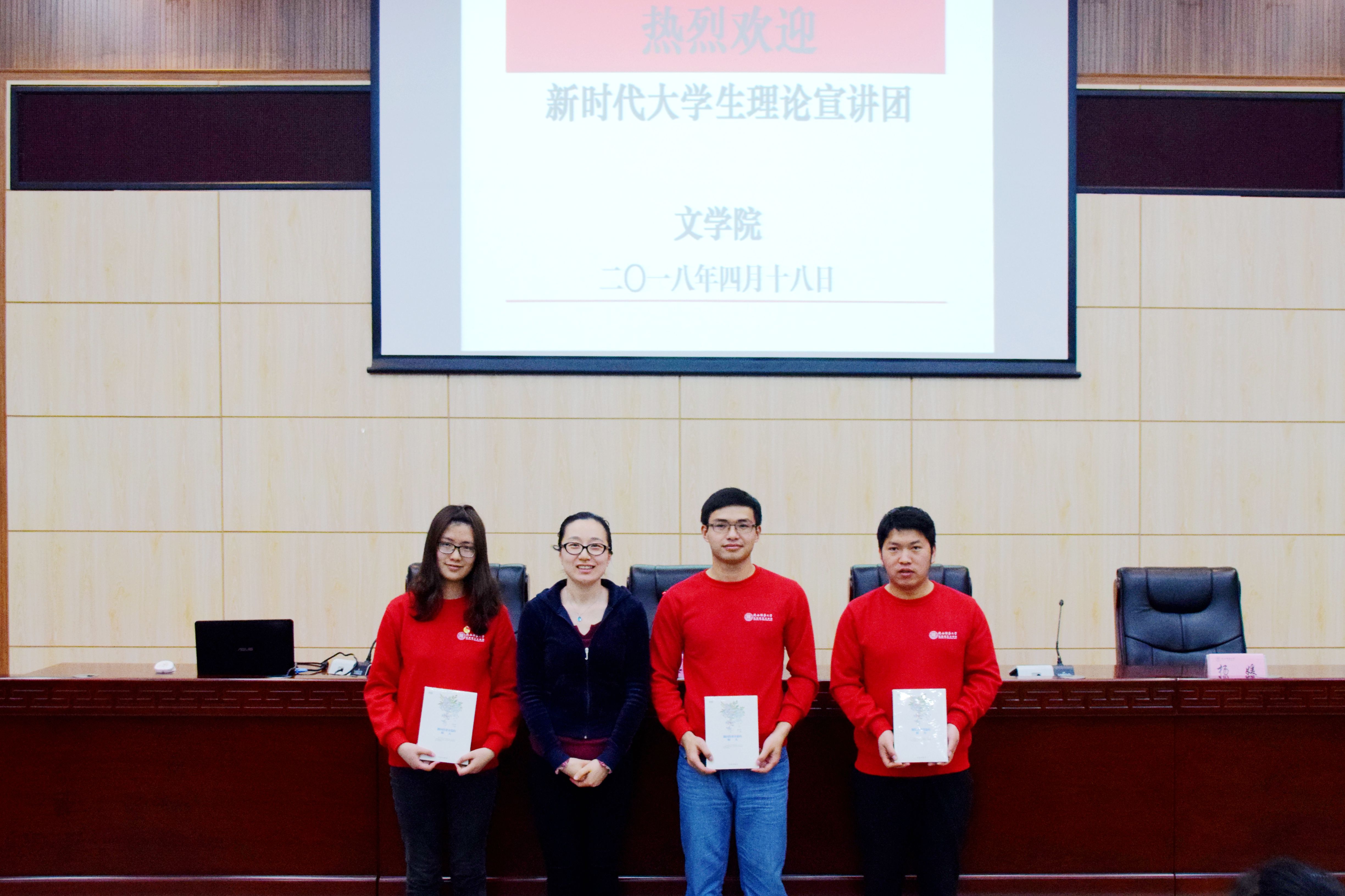 宣讲团成员、马克思主义公司2016级政治学理论专业硕士研究生李年涛同学以“我的军旅初心”为主题,结合自己的两年军旅经历,生动讲述了军队铁打的纪律使他拥有了钢铁般的意志力和抗压能力,增强了心系国家的责任感和使命感。他鼓励在座的各位积极参军,树立崇高的信念,为祖国新时代的建设献一份力。2016级思想政治教育专业本科生杨媛同学则以“弘扬传统文化,坚定文化自信”为主题,以三月初三中国华服日为切入点,展示了当代潮流元素与中国传统文化相结合的服饰作品,希望同学们争做弘扬优秀传统文化的新时代青年,树立文化自信,为中华文化走向世界贡献力量。2015级思想政治教育专业本科生曾华九同学以“乡村发展战略——那合不拢嘴的笑”为主题,讲述了发生在田间小路上的创业故事,因地制宜,种植脐橙,实现了成百上千农民的“脱贫梦”,他号召同学们肩负起新时代下的新任务、新责任,将个人理想与社会理想结合起来。