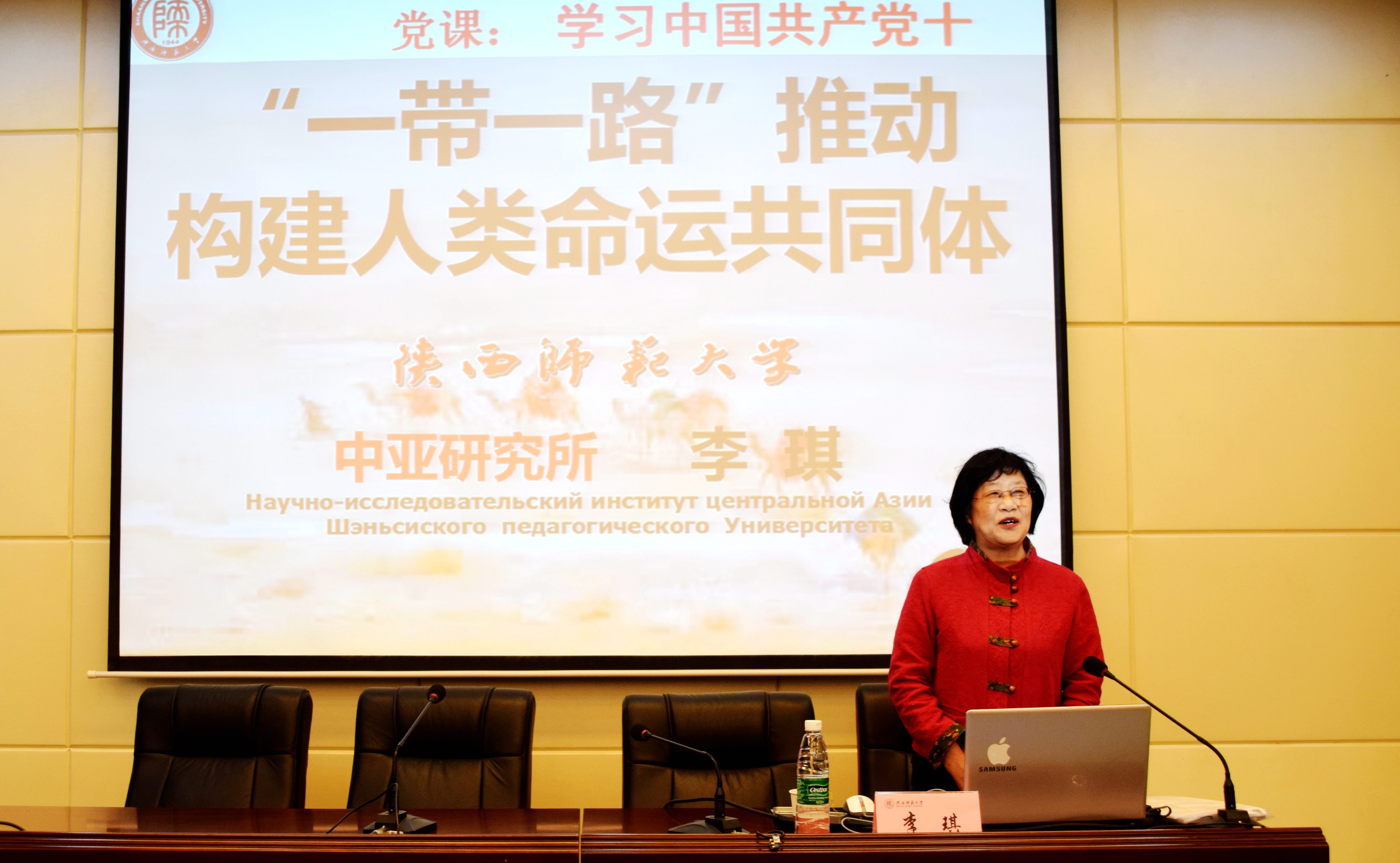 开班仪式结束后,现任陕西省哲学社会科学重点研究基地“‘一带一路’建设与中亚研究协同创新中心”首席专家和主任、beat365官方网站中亚研究所所长、博士生导师李琪教授以“一带一路推动构建人类命运共同体”为题,为学员们讲授本次党课培训班第一课。她结合十九大报告,从宏观层面详细介绍了“一带一路”的概念、内涵、影响以及一带一路的定位和谋略思路,我国地缘环境和多国在中亚地区的博弈情况,以及构建人类命运共同体的宗旨、原则和历史使命。课上,李教授旁征博引,与学员亲切互动,课堂氛围融洽和谐。