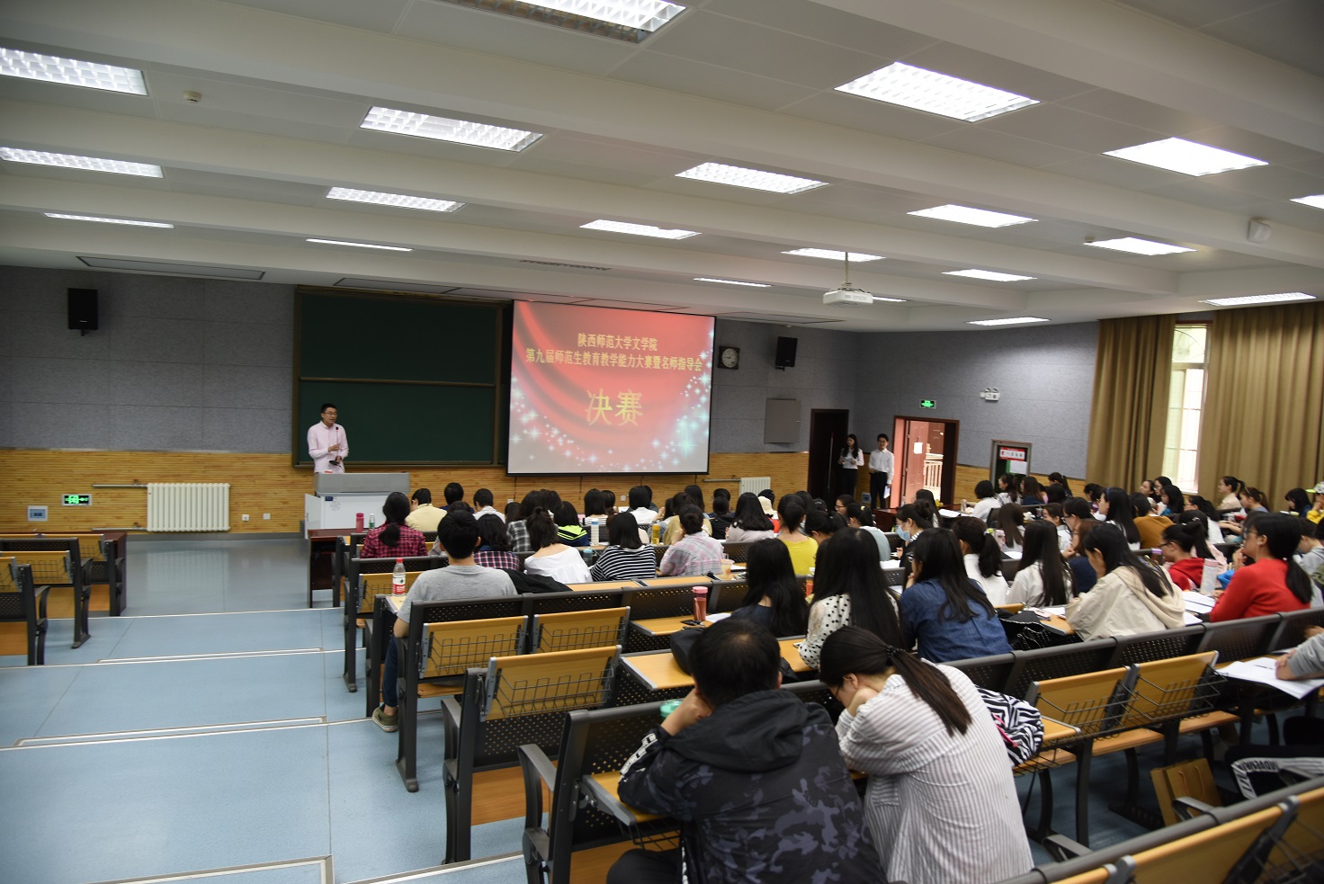 4月28日,beat365第九届公费师范生公司产品能力大赛决赛暨名师指导会在文渊楼4202成功举办。beat365特邀陕西省语文教育界名师西工大附中语文教研组组长、正高级教师徐殿东老师,西安高新一中语文教研组组长、高级教师贾建英老师,陕西师大附属万科中学高级教师、副董事长吴萍老师,西铁一中教务副主任、高级教师马宁老师以及公司语文学科教学论贺卫东副教授担任决赛评委和指导教师。