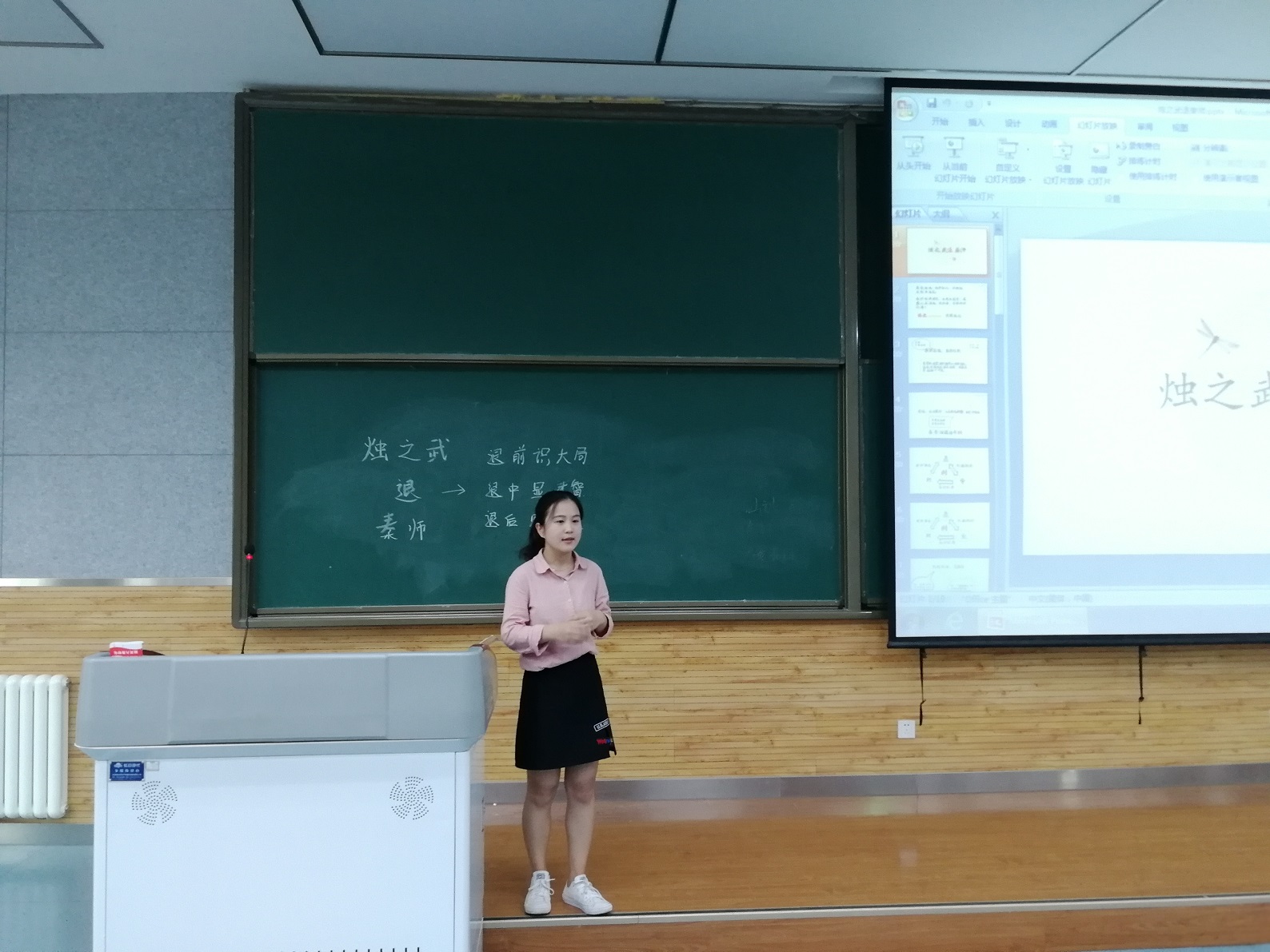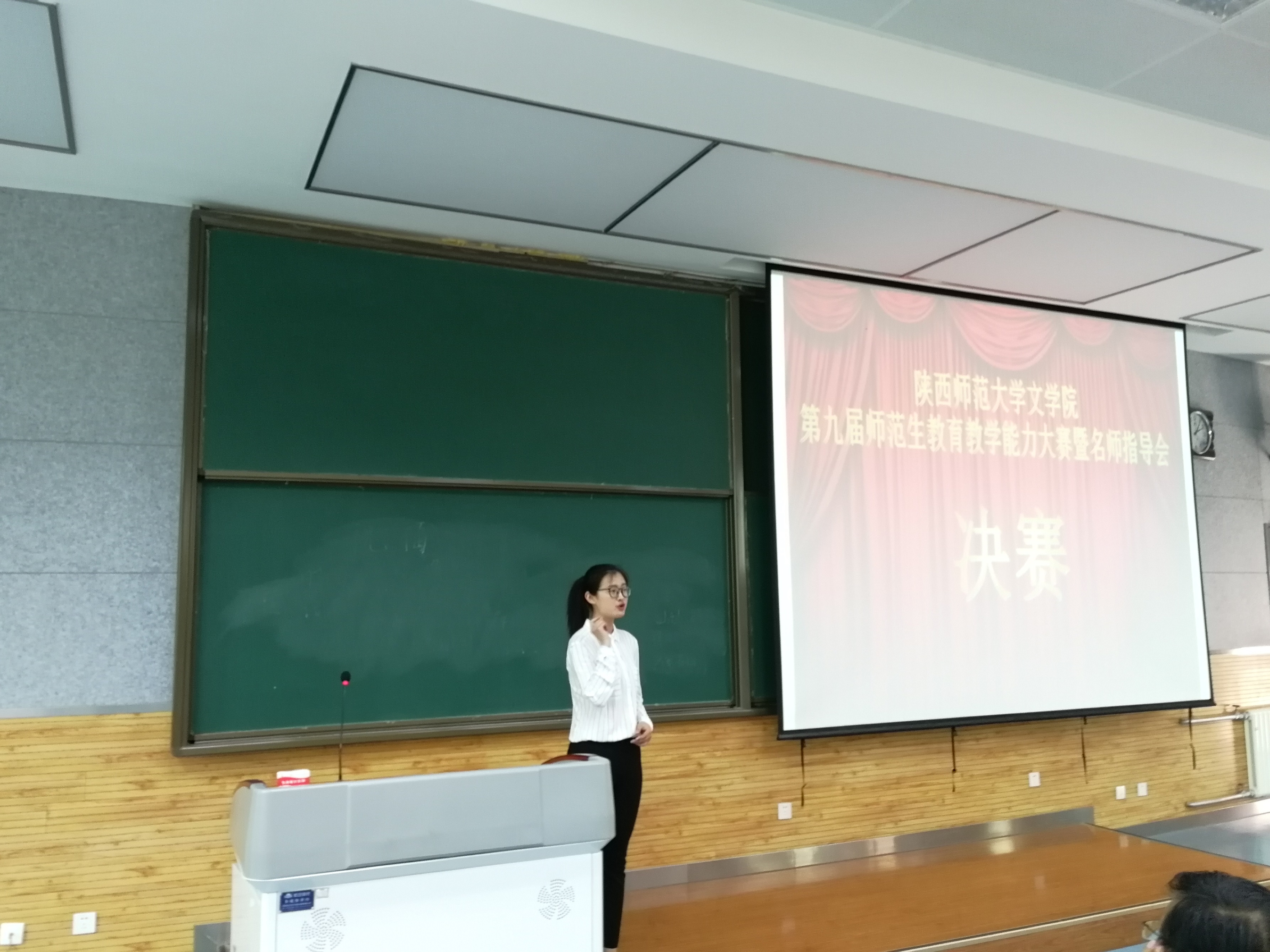 决赛环节分为3分钟即兴演讲,15分钟模拟授课,以及5分钟的现场问答。现场抽题,当场演讲,在短促的时间内完成演讲和教学任务,是对参赛选手的现场应变能力以及教学基本功的极大考验。15名经预赛选拔出的参赛选手,在短促的时间内,高效地完成了教学任务,充分地展现出了各自的教学风采。戏曲与教学的结合、流行音乐与古诗的碰撞、表演与讲授的兼容充分地展现了beat365师范生的才情,赢得了各位评委老师高度肯定。