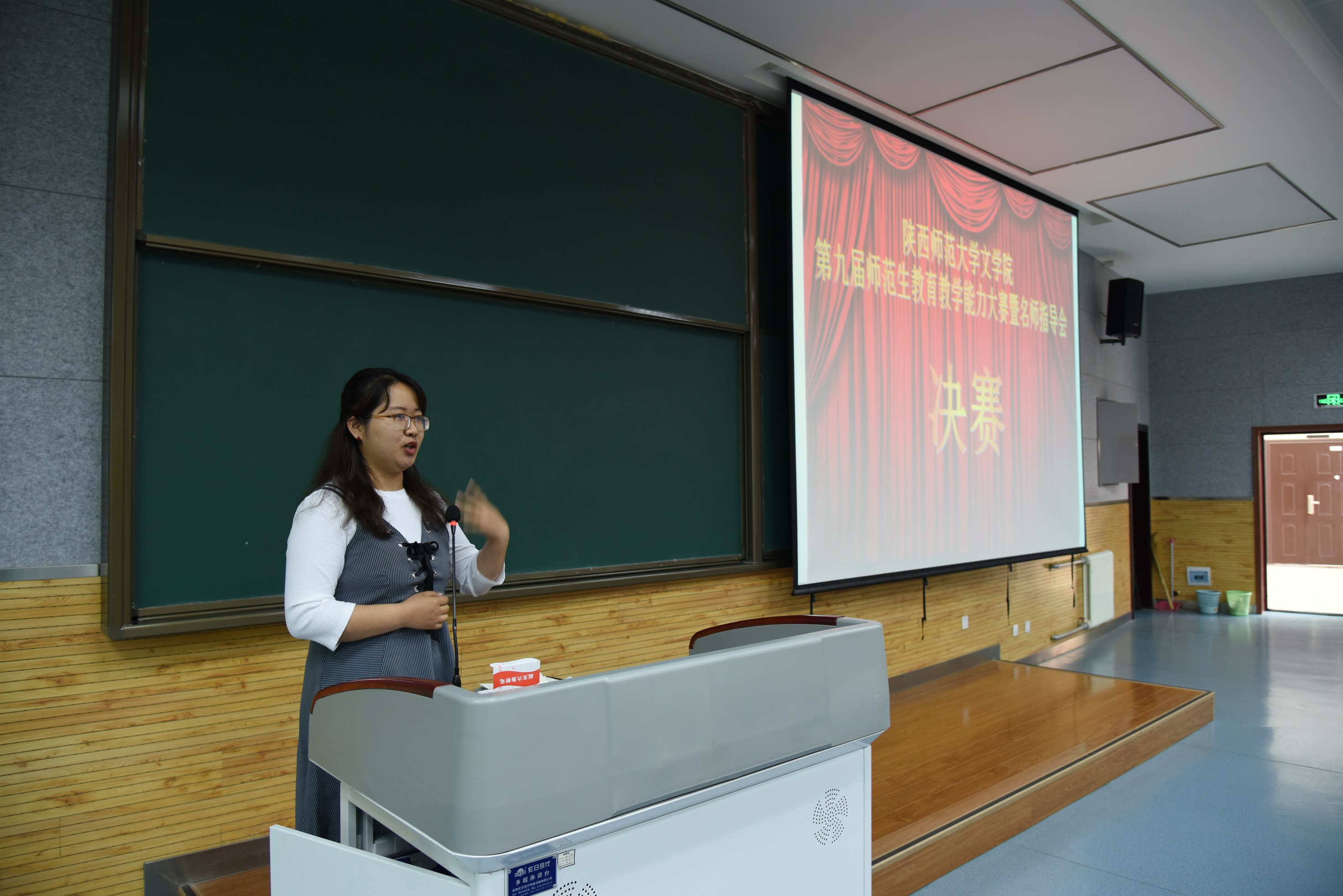 大赛结束后,参赛选手代表卢文静同学发表感言。她结合自己从初赛到决赛的经历,分享了自己的心路历程。她表示整场比赛,自己得到了各位老师的指点,得到了切实的锻炼与成长,并表示自己以后将保持不断学习的状态,努力成为一名优秀的语文教师。