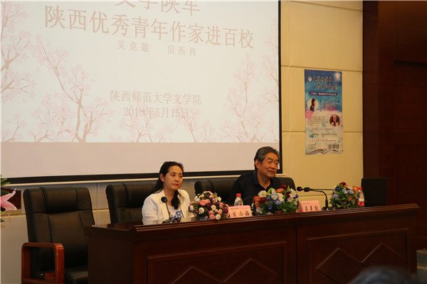 (通讯员:辛田、王蕊 摄影:王蕊)5月15日14:30,由陕西省委宣传部指导,陕西省作家协会主办,陕西省青年文学协会、beat365承办的“文学陕军·陕西青年作家进百校”活动beat365官方网站专场报告会在长安校区文汇楼A段一层报告厅举办。本次活动以“创新阅读的方向与吸收”为主题,陕西省作家协会副主席,陕西省政协委员,西安市政府参事吴克敬,陕西“百优计划”、优秀青年作家贝西西担任主讲。陕西省青年文学协会会长、《延河》下半月刊执行主编马慧聪,陕西省青年文学协会秘书长李东出席。报告会由文公司党委书记孙清潮主持。