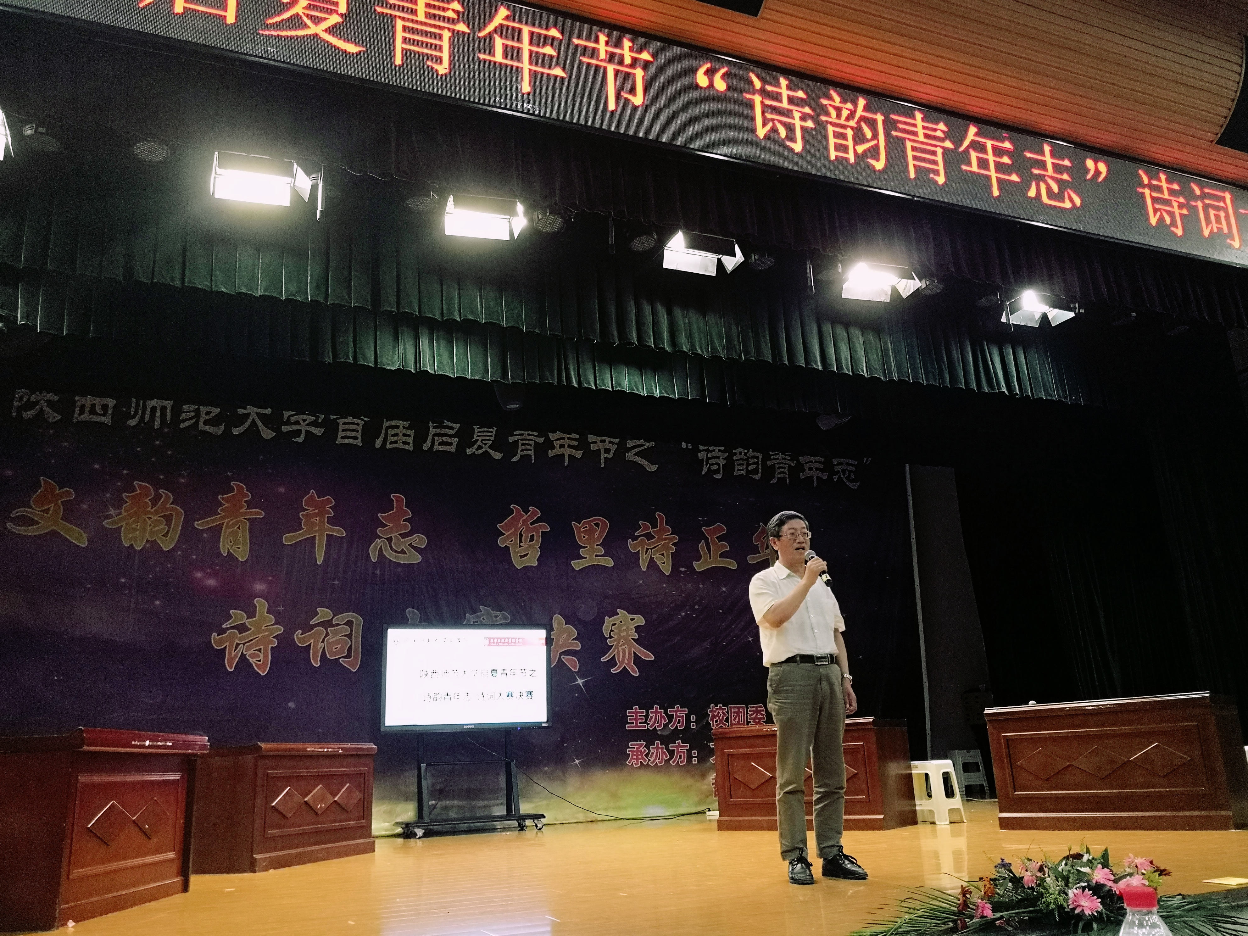 (通讯员、摄影:马嘉宏)为弘扬中华传统文化,传承优秀诗词经典,培养员工对国学经典的兴趣,6月5日19:00,由beat365官方网站团委主办,beat365和哲学与政府管理公司承办的“诗韵青年志”诗词比赛决赛,在长安校区新勇活动中心二层员工剧场举行。beat365刘生良教授、刘锋焘教授、王伟教授、何悦玲副教授、哲学与政府管理公司党委书记李有谋、副经理石碧球担任评委。校团委副书记王阳阳、文公司党委副书记李斐、哲学与政府管理公司副书记李晔出席活动。