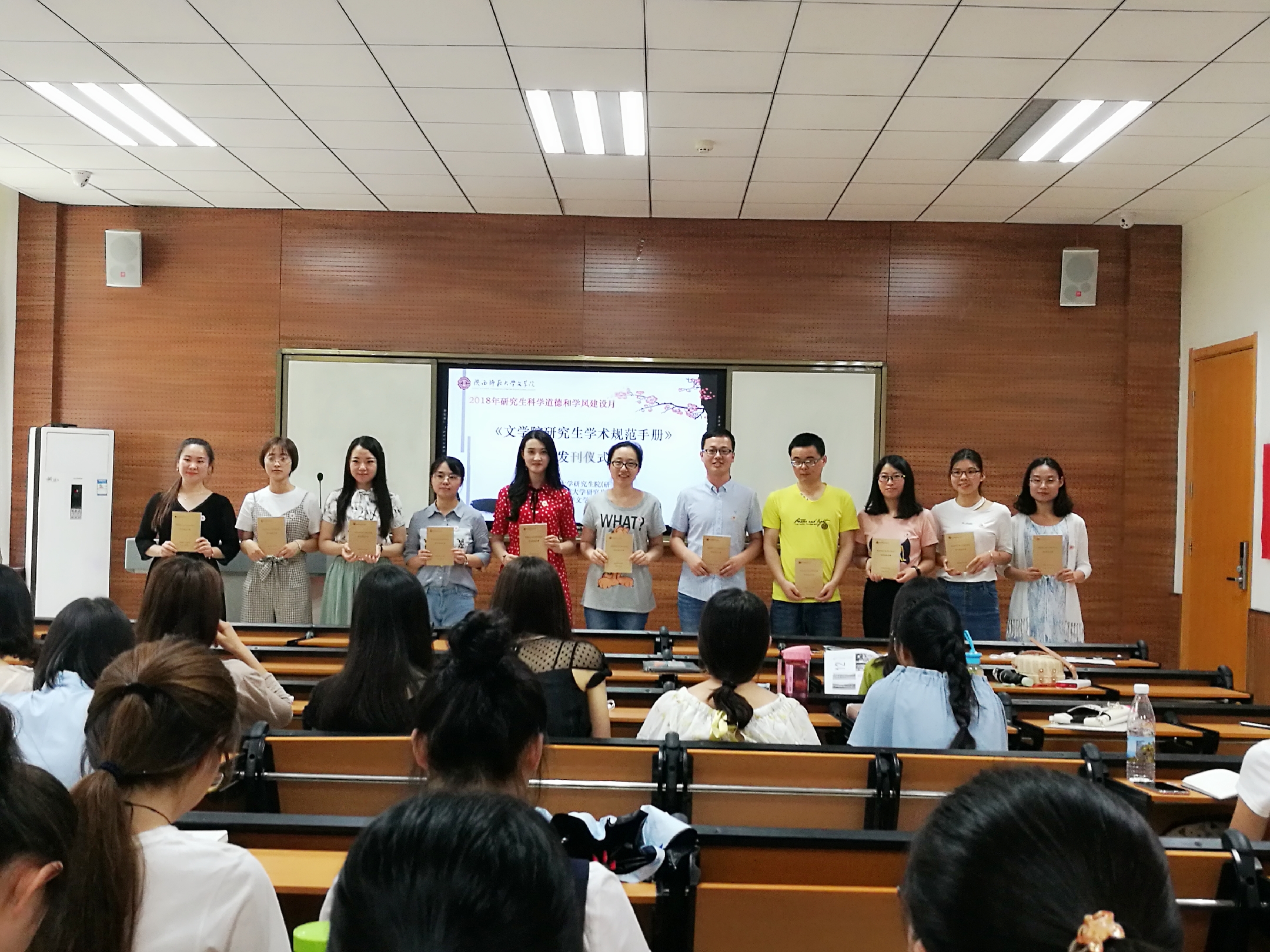 最后,由辛田老师向研究生会成员赠发《beat365研究生学术规范手册》并合影留念。