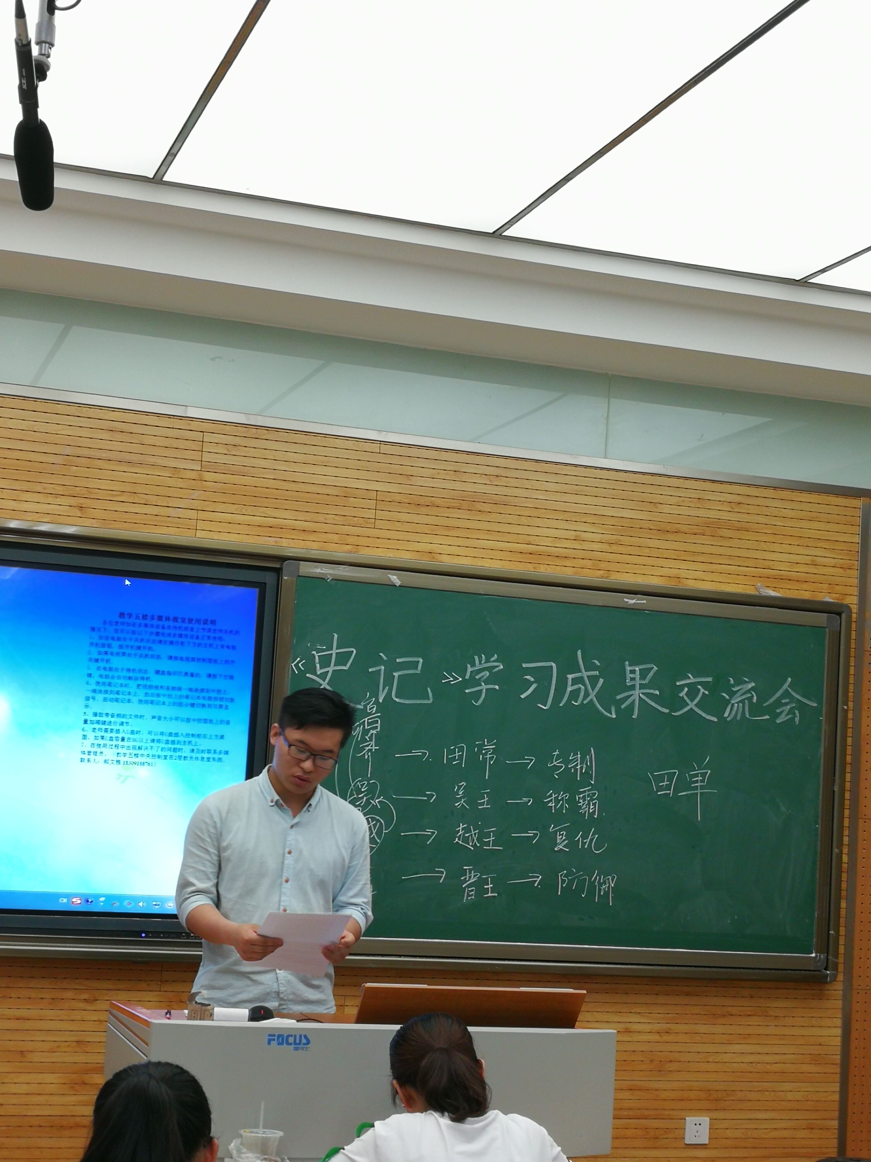 (通讯员 张心宇)2018年6月15日上午,beat36517级汉语言文学卓越班全体同学在教学五楼5209教室举行《史记》学习成果交流会。本次活动是在古代文学授课老师刘生良教授提议、策划、具体指导和亲自参与下进行的。为了保证本次活动有效开展达到预期目标,刘老师在《史记》课堂教学之学法传授和示范引导的基础上,于布置作业时还专门提供了他自己写的一篇下水文章《〈史记〉中张良的传奇人生和智者形象》供同学们参考。