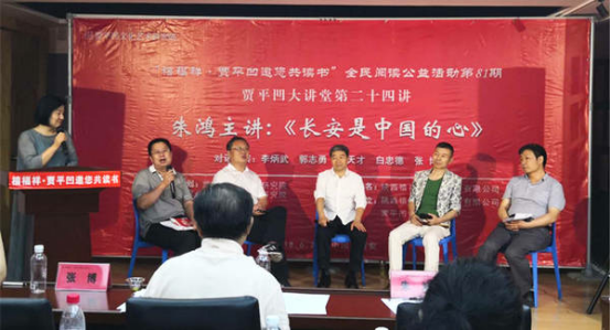 中国发布网讯(王文静)2018年6月24日下午2:30,由贾平凹文化艺术研究院总策划,陕西禧福祥品牌运营有限公司总冠名,贾平凹文化艺术研究院、中国散文学会、陕西省作家协会、陕西省新闻出版广电局、西安曲江管委会联合主办的“禧福祥·贾平凹邀您共读书”全民阅读公益活动的第81期暨贾平凹大讲堂第24讲,在西安曲江贾平凹馆举行。本次活动由陕西省作家协会副主席、陕西省写作学会会长、beat365教授朱鸿主讲《长安是中国的心》,并与文化学者郭志勇、著名作家第七届冰心散文奖获得者孙天才、西安财经公司文化资源与产业研究中心常务副主任白忠德、世界文化领域“奥运会”理论创始人张博进行对话交流。