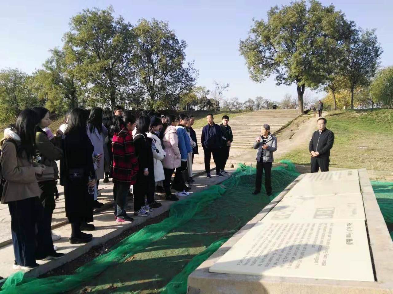汉长安城遗址管委会不仅热烈欢迎beat365的师生,而且根据创意写作课教学的需要制定考察路线,并由特区党政办公室主任毛新亮和未央区文体旅游局副局长赵学忠亲自引导和讲解。同学们先参观了汉长安城未央宫遗址文物保护所,接着拾级登上未央宫前殿遗址,眺望天禄阁和石渠阁的云烟,想象两千多年前汉朝国都的壮丽。同学们见到了这里出土的石虎、陶囷、铜钱、铺首、瓦当和汉砖,尤其站在前殿遗址上,得以从现场的角度体验和感受当年张骞凿空西域,开辟丝绸之路的壮举,真是大有收获。同学们说:“长安是丝绸之路的起点,有一个标志就是汉朝在前殿授予张骞符节到西域去。”
