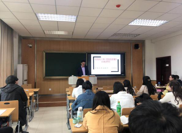 第66场博士学术报告以《<诗史>与<四言史徵>比较研究》为题,由中国古典文献学专业博士研究生黑金福主讲。黑金福首先对《诗史》和《四言史徵》做了简要介绍,《诗史》以四言形式咏赞吟唱,表现三皇五帝到明代发生的事件,语言简练,内容丰富又谱以韵律,是一部集叙事、议论、抒情为一体的咏史诗。《四言史徵》是《诗史》的注释,就四言诗所描写的内容,徵引史料,详说其由。随后他向大家叙述了《四言史徵》的“凡例”内容,比较了《诗史》和《四言史徵》之间的区别。他认为,首先二者的情感色彩不同,其次,卷数划分不一。通过这两方面的比较,让大家对《诗史》和《四言史徵》之间的关系有了更清晰的认识。报告简明扼要,内容深刻,观点明确。