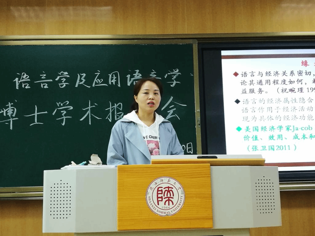 第87场博士学术报告以《语言规划对西安城市发展的意义》为题,由语言学及应用语言学专业博士研究生王勤主讲。在报告中,王勤首先讲述了研究的缘起,并分析了西安城市发展的背景。接着,探析了语言规划对城市发展的重要性。随后王勤列举了近几年西安的语言环境和成就。最后,王勤详细地讲述了自己对城市语言规划的认识,以及对公共语言服务的认识。王勤认为,国际化语言环境不等于外语环境,不等于英语环境;公共语言服务不等于翻译服务,不等于为外国人提供语言服务。