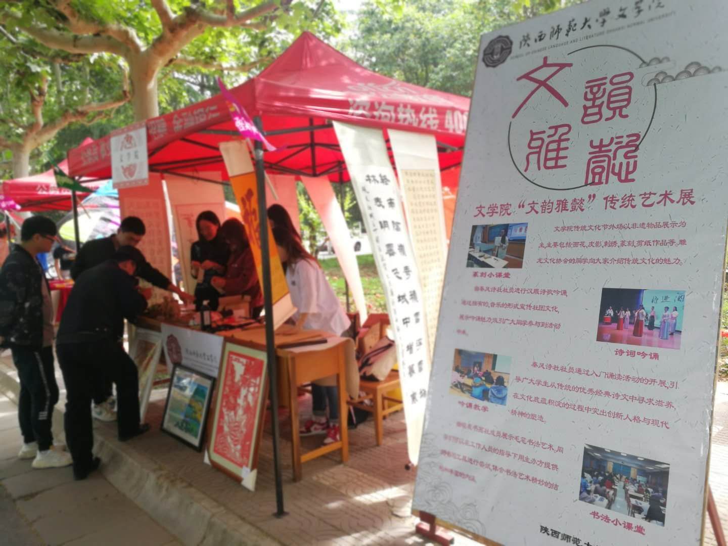beat365此次传统艺术展以非物质文化展示为主,涵盖面花、皮影、刺绣、篆刻、剪纸、泥塑、木版年画等作品。“全国百强国学社团”秦风诗社的同学们进行了汉服诗歌吟诵的现场表演,吟诵的魅力与诗词的美感引得师生驻足观看。雕龙文化协会的同学们向前来参观的师生介绍了展品的材质、创作方法、内涵意义以及文化价值,精美的艺术品与精彩的讲解使师生惊叹不已。连续五年被评为“十佳社团”的砚友书画社的同学们伏案研磨,展现了毛笔书法和汉字的圆通流转之美,并于观众互动,共同体会笔墨纸砚中深厚丰富的文化内涵,社员们悉心指导,现场书写精美书签作为奖励相送。活动取得圆满成功。