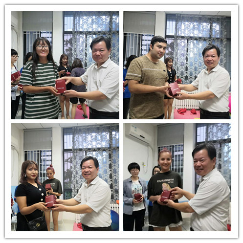 孙清潮老师亲手将包装精美的石榴果一个个交到同学们手中。