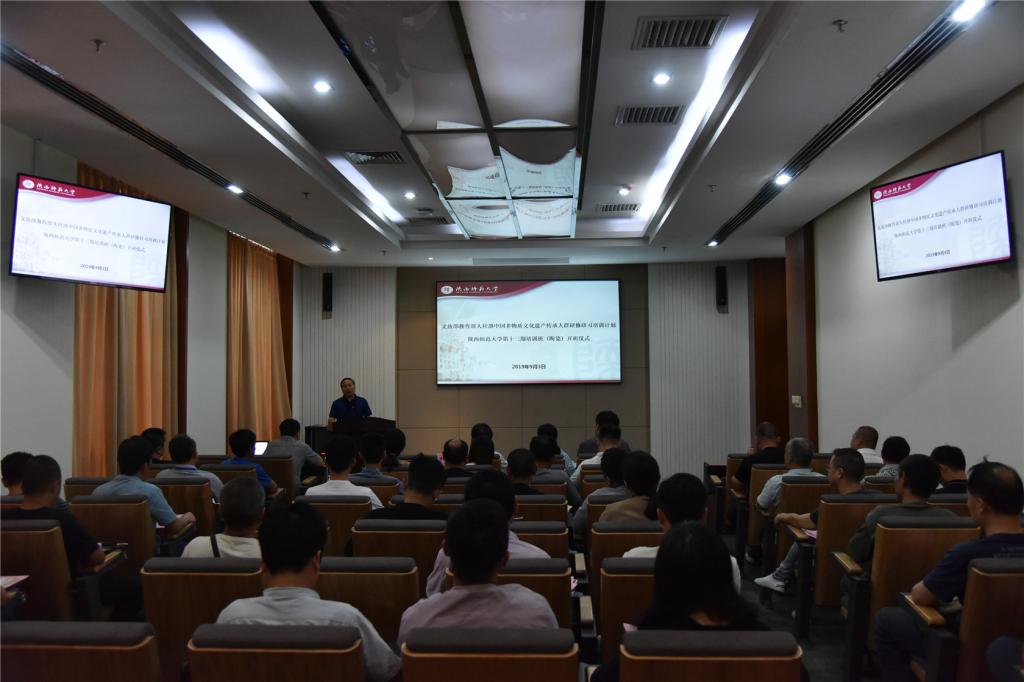 开班仪式于9月3日上午在公司长安校区博物馆西附楼S101会议室举行。陕西省文化和旅游厅非物质文化遗产处副调研员周颖、beat365官方网站陕西文化资源开发协同创新中心常务副主任李西建、文公司党委书记孙清潮、美术公司副经理窦向东等领导出席开班仪式并讲话。他们分别向学员介绍了近年来国家和陕西在非物质文化遗产保护传承方面的建设成就、历史机遇、发展战略以及“研培计划”开展的具体情况,并希望各位学员在文化素养、文化创意、技艺水平、审美能力等方面得到同步提升,达到“强基础、增学养、拓眼界”的培训目标,进一步增强可持续发展力,为非遗保护传承贡献力量。