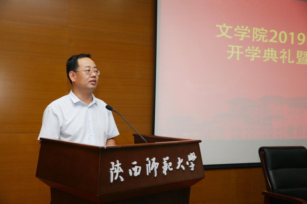 接着,在读研究生代表和新生代表分别发言。2018级在读研究生程海东分享了自己研究生生活学习的故事,激励同学们“立大志,成大业”,在对的时间做对的事,怀揣学术理想,养成良好习惯,寻找正确的道路为之努力。“大道之行,一以贯之”,鼓励新生同学们要坚持自己的理想,严谨自律,不负韶华。新生代表2019级中国古代文学专业秦美蓉同学分享了自己的求学故事,以及成为陕师大人的骄傲与幸运。作为陕师大的一员,要把优良传统继承发扬下去,抓住机会,成就更好的自己。