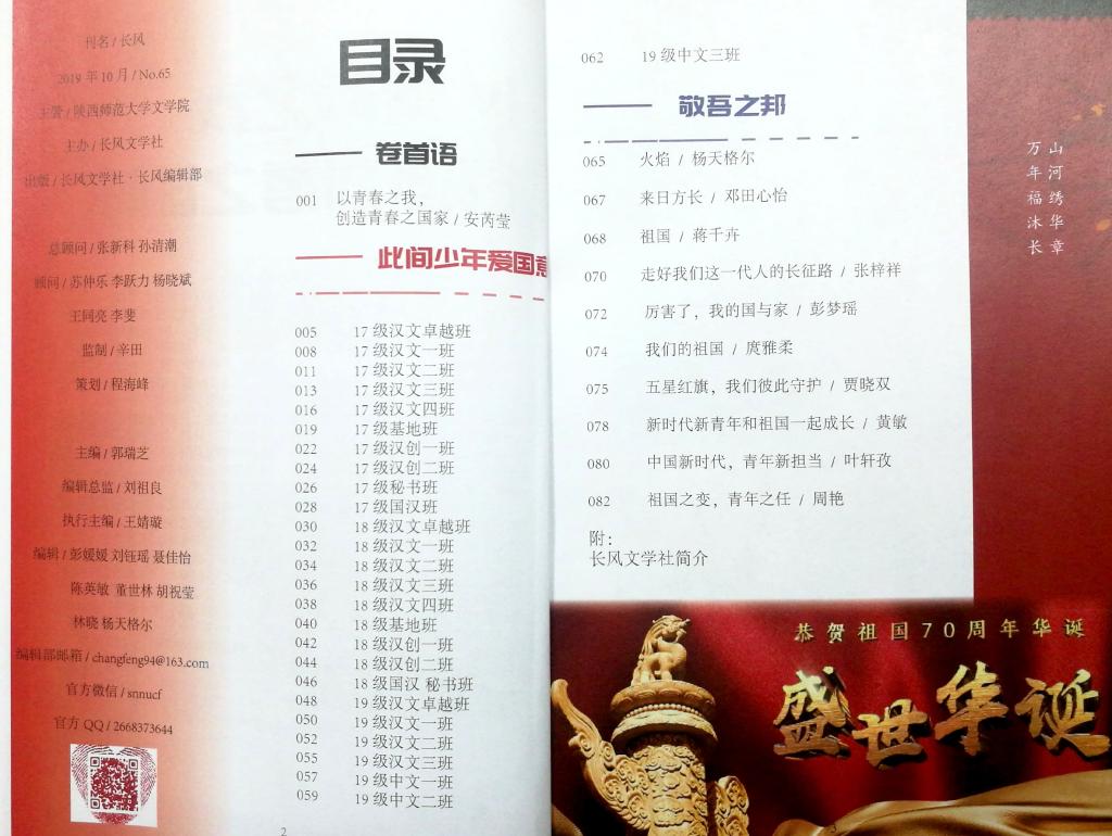2019年9月16-20日,公司长风文学社结合各班团日活动,收集赤子心声,汇聚爱国热浪,用一句句美好的祝福,表达对新中国取得伟大飞跃的骄傲和继往开来、勇攀高峰的的期许,用熟悉的方式、真挚的情感表达文苑学子的拳拳之心。