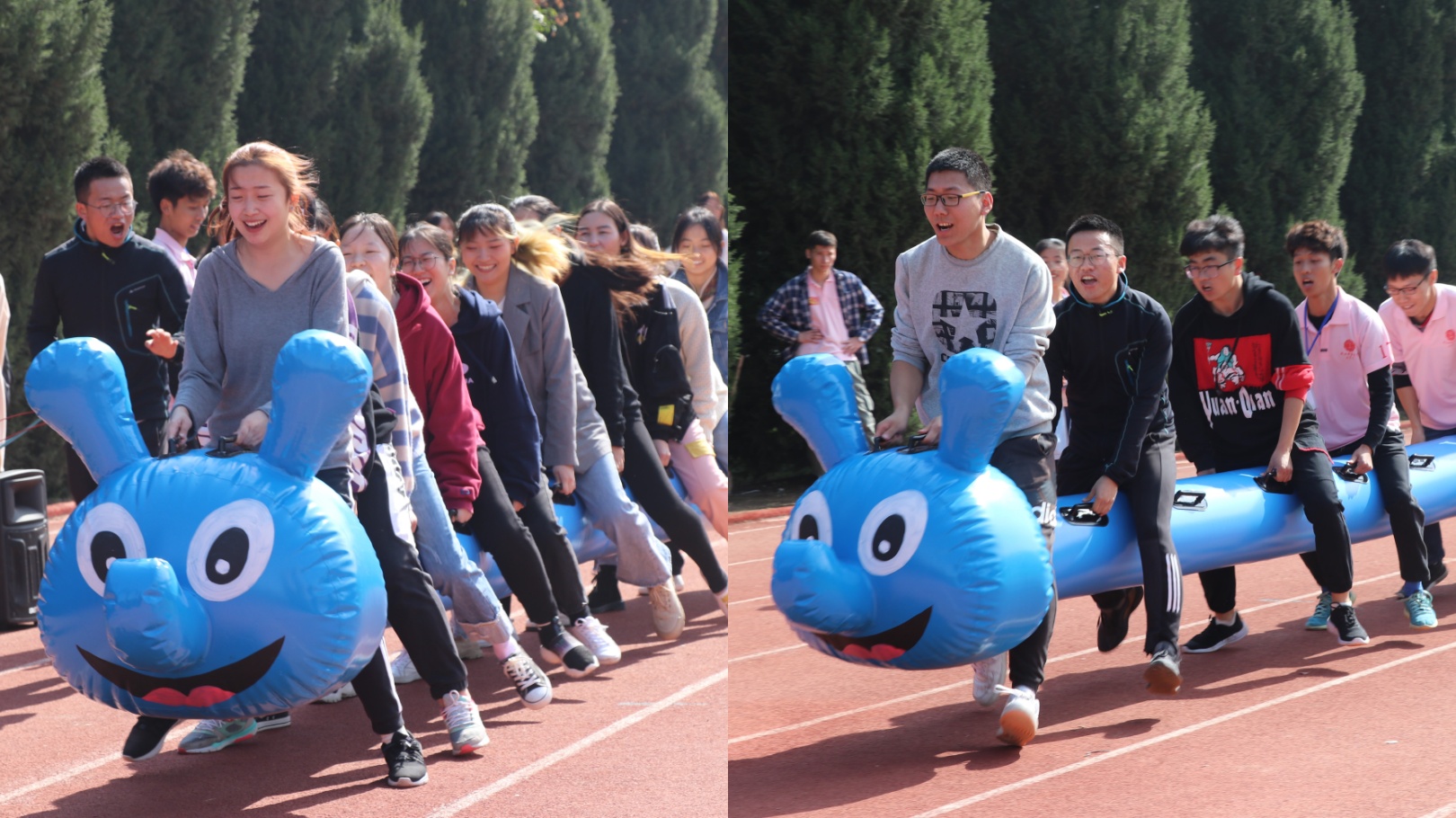 动力火车,充分准备,密切配合,步伐一致,冲向终点。